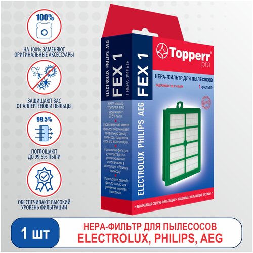 HEPA-фильтр FEX 1 для пылесосов от Topperr является идеальной заменой фильтров пылесосов ELECTROLUX, PHILIPS, AEG, BORK.