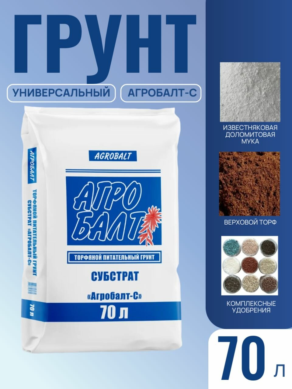 Артикул: 2174-453. Вес: 12800 гр, Размер упаковки: 50 x 15 x 80 см, Температурное ограничение: Нет, Вес, кг/Объём, л: 70, Вес, г/Объём, мл: 70, Форма выпуска: Сухое, Область применения: Для всех видов растений, культур. Торфяной субстрат Агробалт, марка Агробалт-С состоит из верхового торфа с добавлением комплекса минеральных удобрений и увлажняющим реагентом. Это универсальный субстрат для рассады, цветущих растений, овощных культур, растений для клумб. Отлично подходит для профессионального выращивания фиалок и других цветущих растений. Также данный субстрат можно использовать в качестве основы для выращивания адениумов. Можно использовать как в закрытом, так и открытом грунте для улучшения структуры почвы. Преимущества применения торфа агробалт, марка агробалт-с: готовый субстрат для растений; обогащен минеральным удобрением, которое растворяется в воде. NPK 90-60-110 мг/л; в составе микроэлементы: цинк, марганец, бор, медь, кобальт; воздухопроницаемый и влагоемкий; структура торфа 0-20 мм; не содержит патогенных бактерий и грибов; может использоваться в смеси с перлитом и другими добавками.