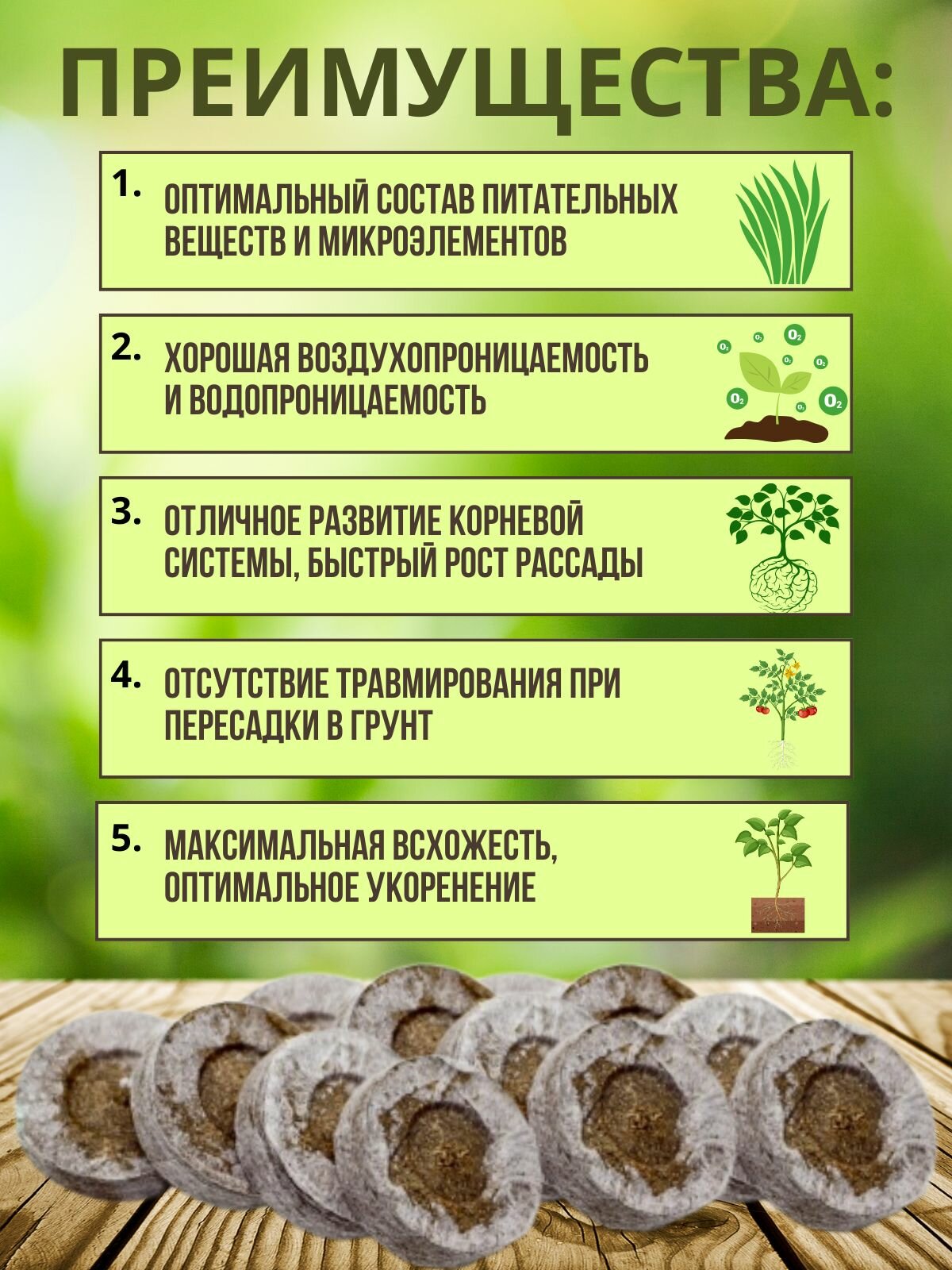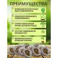 | Дополнительная информация | каждая таблетка оптимальна для проращивания одного семечка; состав: прессованный торф мелкой фракции, измельченный мох сфагнум, питательные микроэлементы, антибактериальное вещество; оболочка - экологичная разлагаемая сетка |
