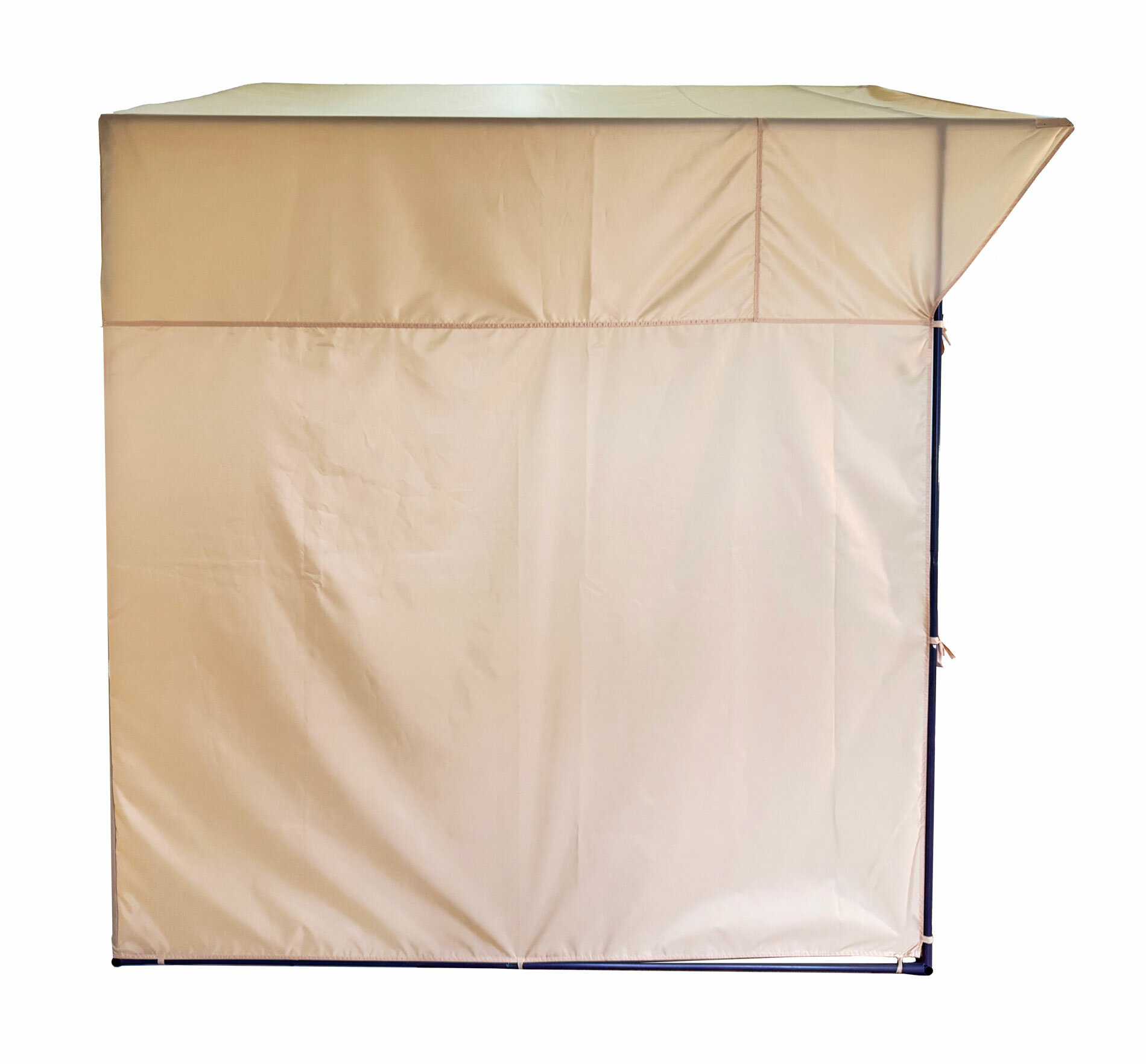 Торговая палатка применяется для выездной и рыночной торговли в любое время года. Размер основания палатки: 1,5 x 1,5 м. Высота боковой стенки: 1,85 м. Высота в коньке: 2.12 м.