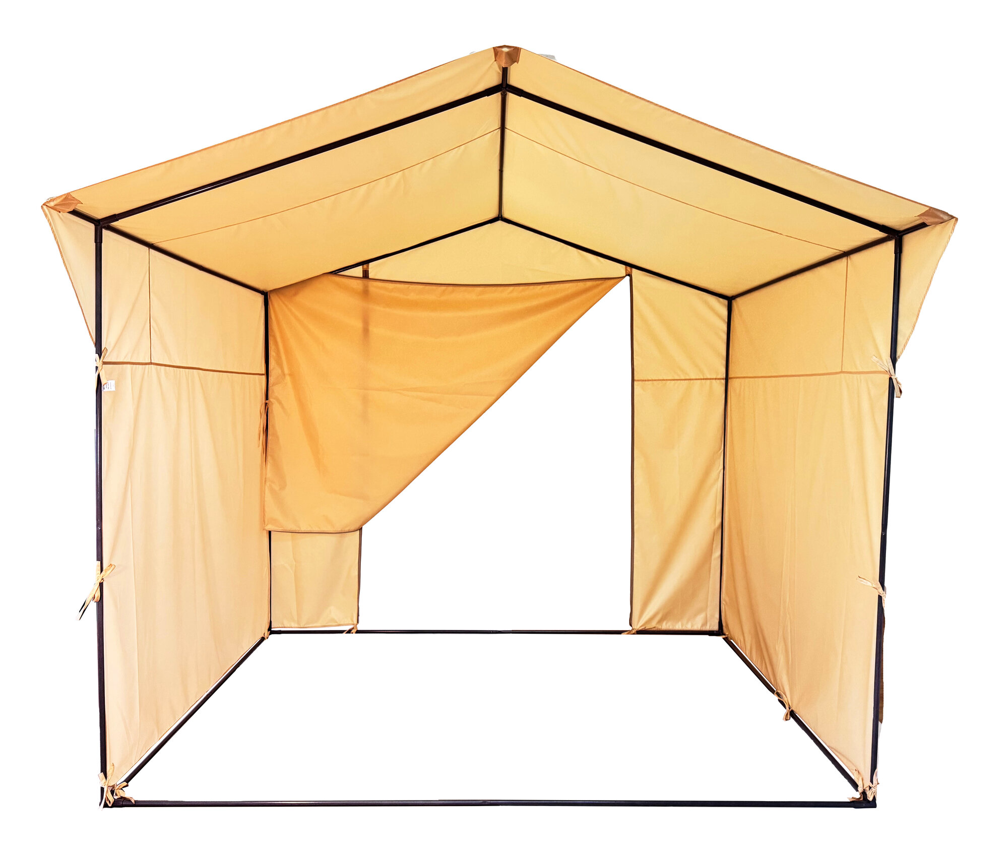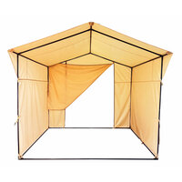 Торговая палатка применяется для выездной и рыночной торговли в любое время года. Размер основания палатки: 2,5 x 1,9 м. Высота боковой стенки: 1,85 м. Высота в коньке: 2.3 м.