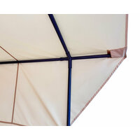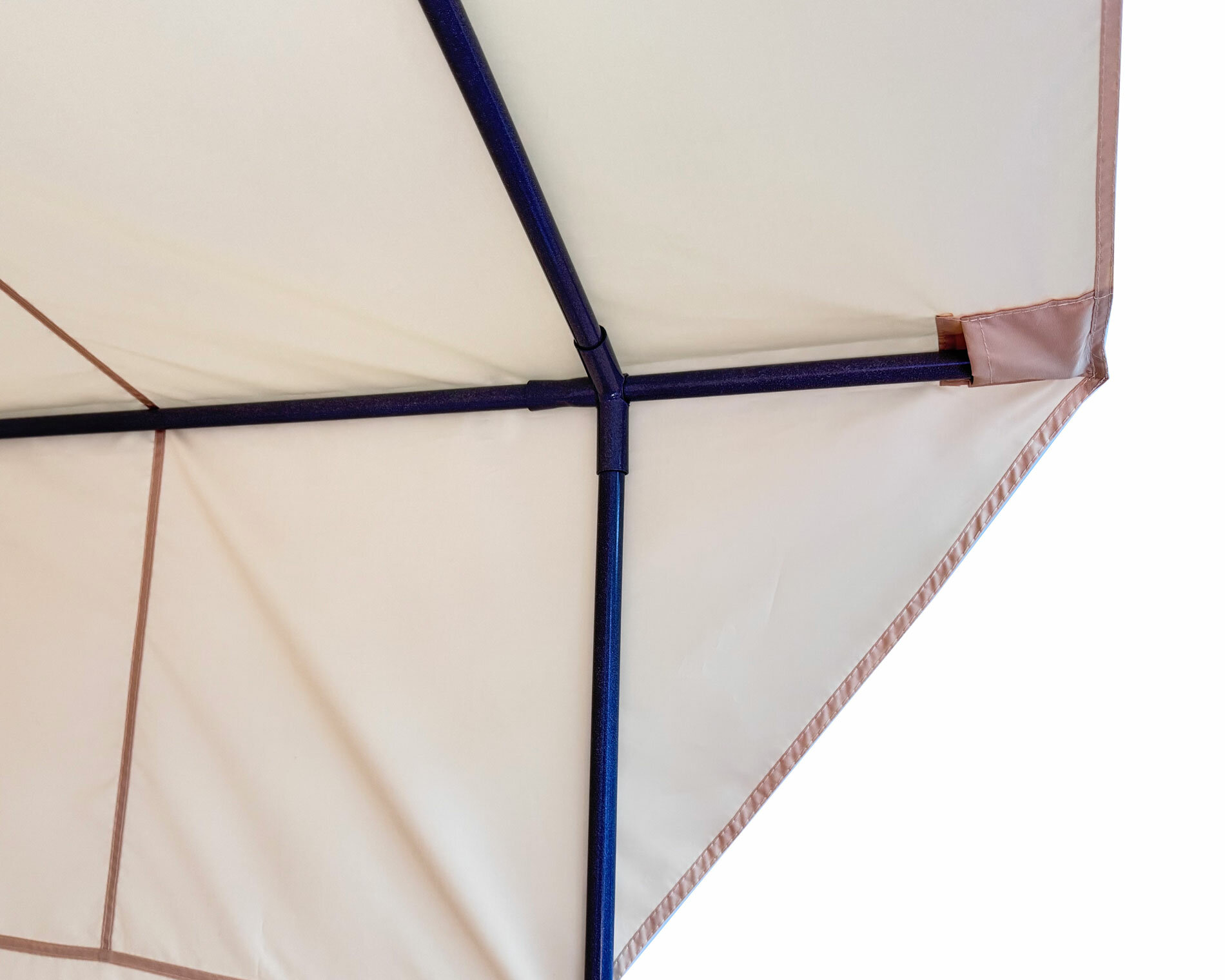 Фиксация узлов нижнего основания каркаса осуществляется по системе без болтового крепления - на фиксаторах, что обеспечивает быструю сборку каркаса и предотвращает самопроизвольное разъединение узлов. Открытые элементы козырька закрыты пластиковыми внешними защитными заглушками, которые предотвращают попадание внешних осадков внутрь каркаса и защищают тент от порезов о металлические детали каркаса. Детали каркаса упакованы в транспортировочный чехол из полиэфирной ткани "Оксфорд"