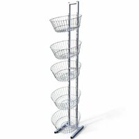 Особенностью данной стойки является наличие пяти круглых сетчатых корзин. Благодаря мелким ячейкам корзин, товары можно выкладывать россыпью, что позволяет использовать стойку для размещения мелких пакетированных изделий и товаров без упаковки.