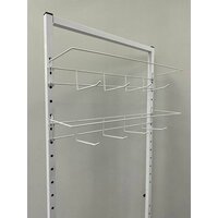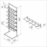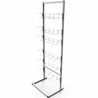 Стойка оснащена 6-ю блоками крючков, каждый из которых вмещает до 4-х рядов товаров. Таким образом, общая вместимость стойки составляет 24 крючка.