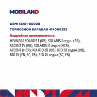 Тормозной барабан MOBILAND, для Hyundai Solaris, Kia Rio, задний, 1 шт