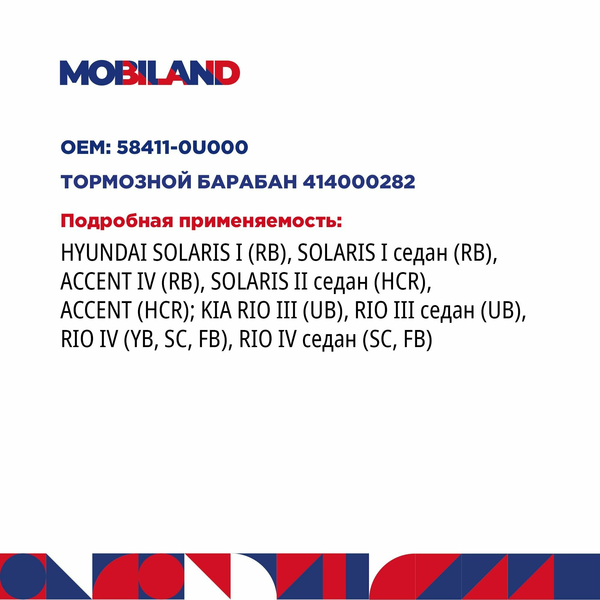 Тормозной барабан MOBILAND, для Hyundai Solaris, Kia Rio, задний, 1 шт: сравнение цен, характеристики, фото, актуальное наличие и цены.