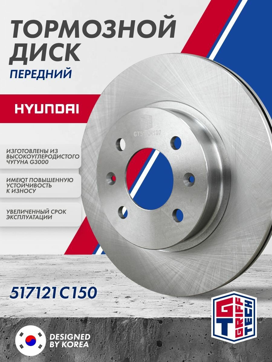Купить Тормозной диск передний GRIFF TECH Корея (с ABS) D255 для Hyundai Getz (Click 2002.4 — 2011) / I-20 (2008 — 2014)/ Хендай Гетц(Клик) / 517121C150 с доставкой по всей России.