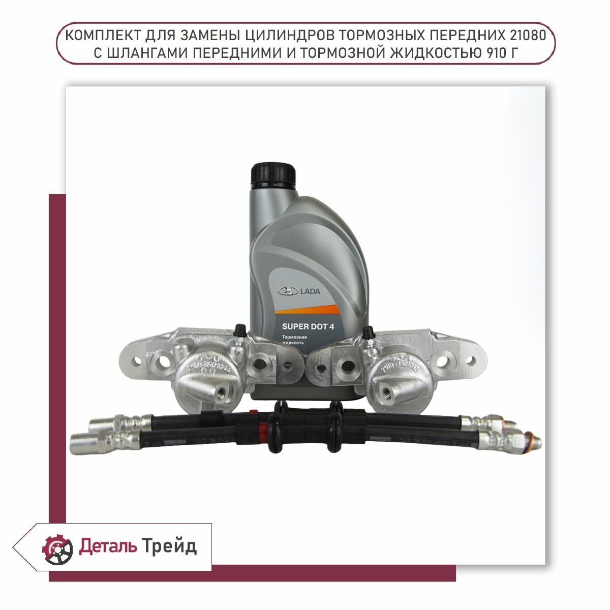 - Тормозной цилиндр переднего суппорта + тормозные шланги + тормозная жидкость 955г. (комплект) LADA для а/м ВАЗ 2108-99, 2110-12, 2113-15, Kalina, Priora, Granta - 1 комплект (2 цилиндра суппорта, 2 тормозных шланга, 1 упаковка тормозной жидкости 955г.)