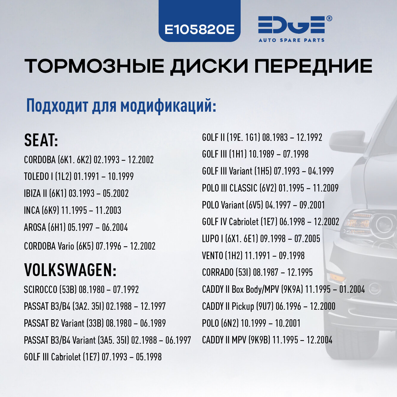 Тормозные диски передние ФОЛЬКСВАГЕН ПОЛО, VW POLO (97-01), E105820E: сравнение цен, характеристики, фото, актуальное наличие и цены.