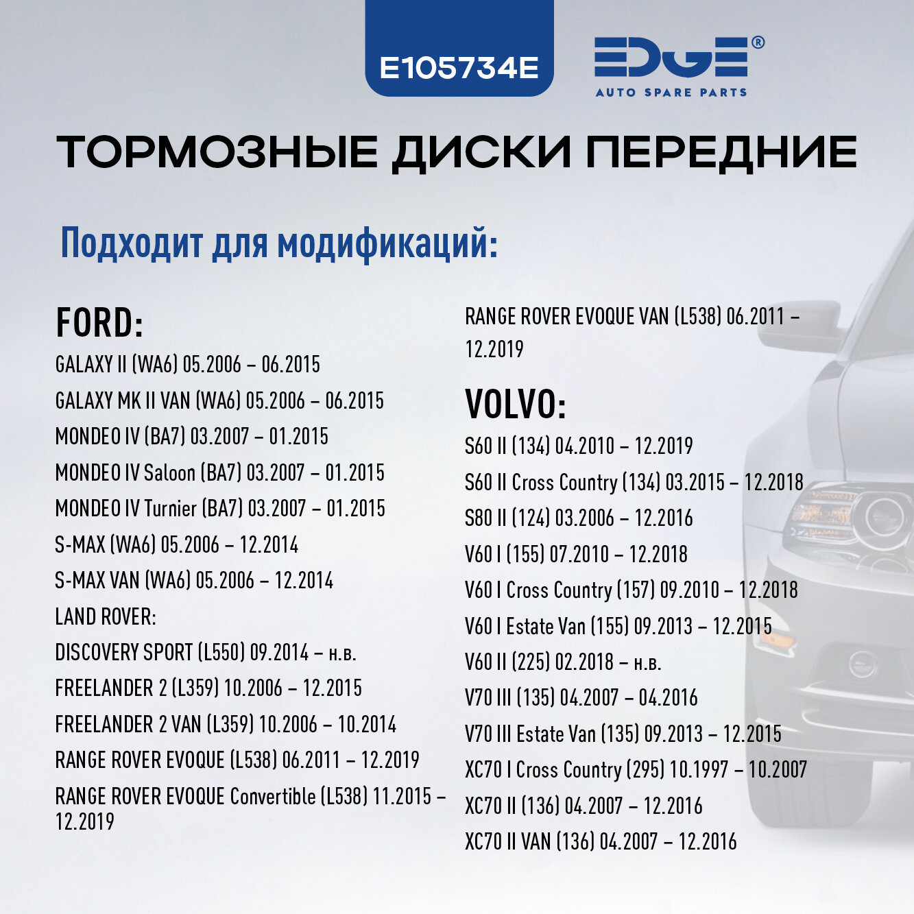 Тормозные диски передние форд мондео 4 (07-15), FORD MONDEO IV, вольво S60 2 (15-18), VOLVO S60 II, E105734E: сравнение цен, характеристики, фото, актуальное наличие и цены.
