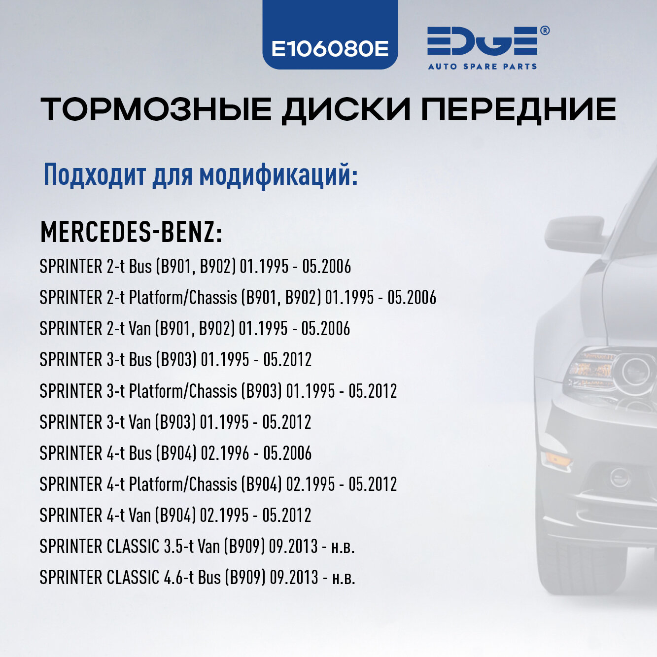 Тормозные диски передние мерседес спринтер (95-н. в.), MERCEDES-BENZ SPRINTER, E106080E: сравнение цен, характеристики, фото, актуальное наличие и цены.