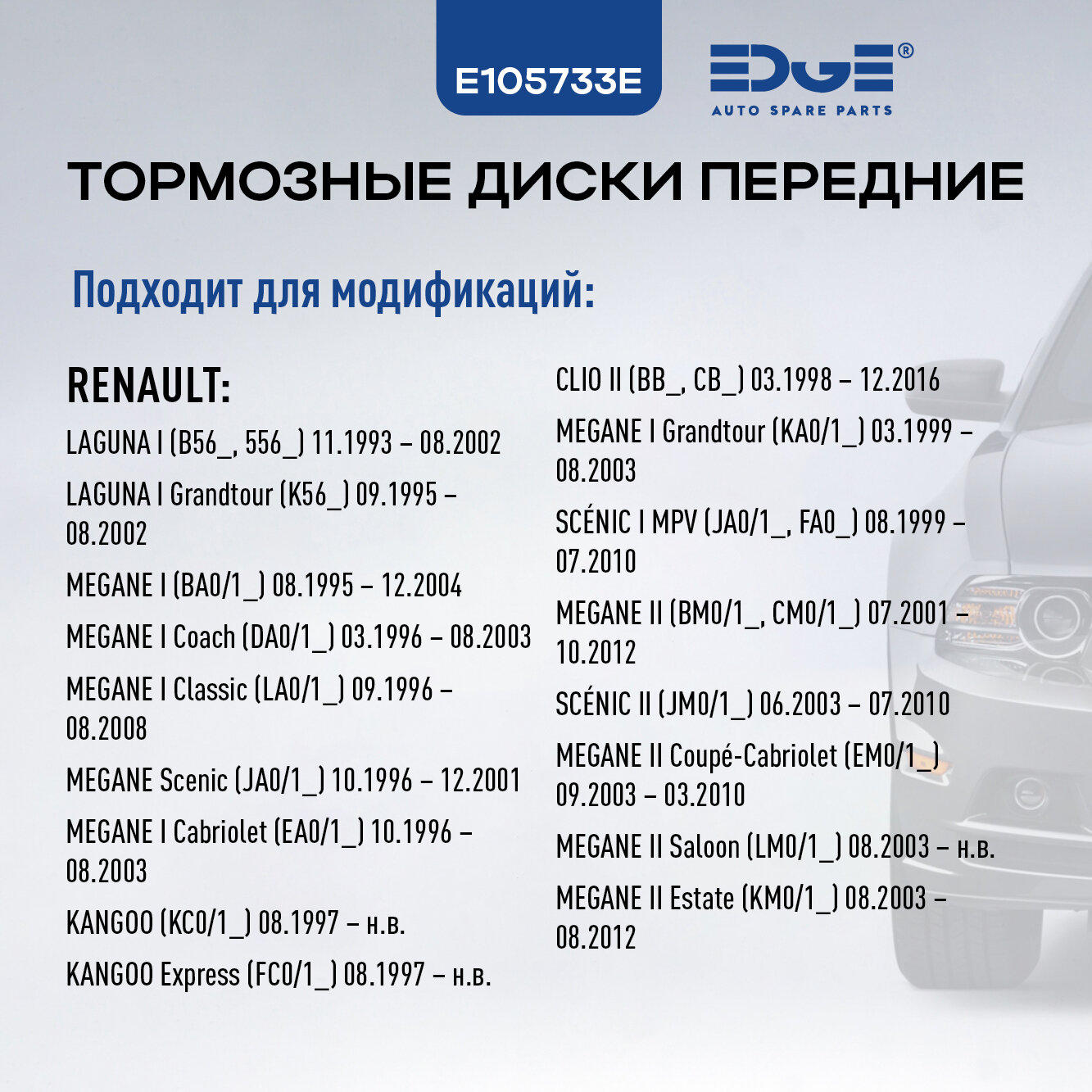 Тормозные диски передние РЕНО ЛАГУНА 1 (93-2), RENAULT LAGUNA, РЕНО МЕГАН 1 (95-08), RENAULT MEGANE, E105733E: сравнение цен, характеристики, фото, актуальное наличие и цены.