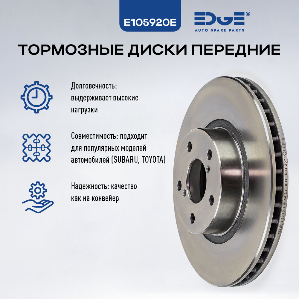 Тормозные диски EDGE идеально подходят для использования на переднем мосту автомобилей. Они обладают рядом ключевых параметров, которые делают их надежным выбором для обеспечения высококачественной работы тормозной системы.