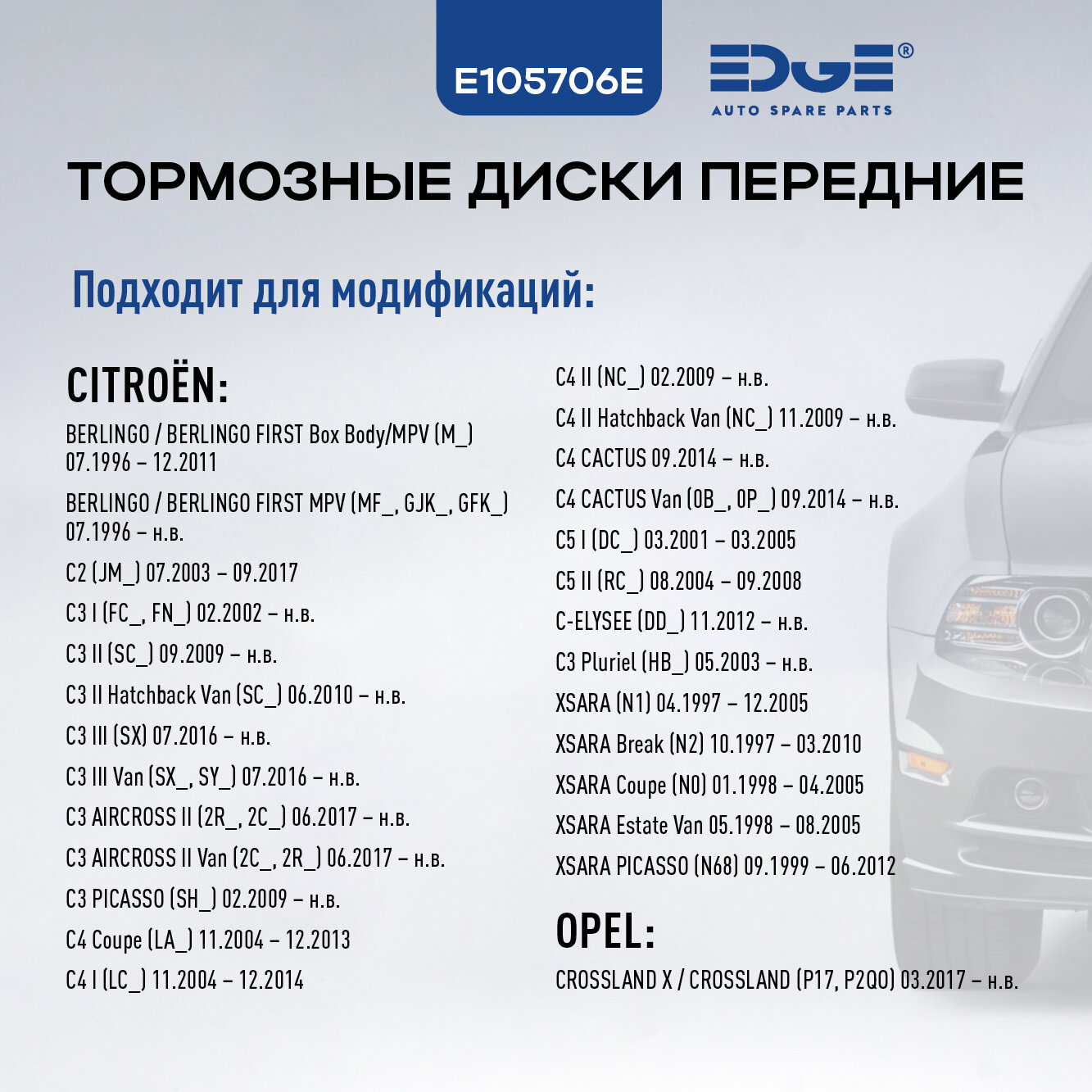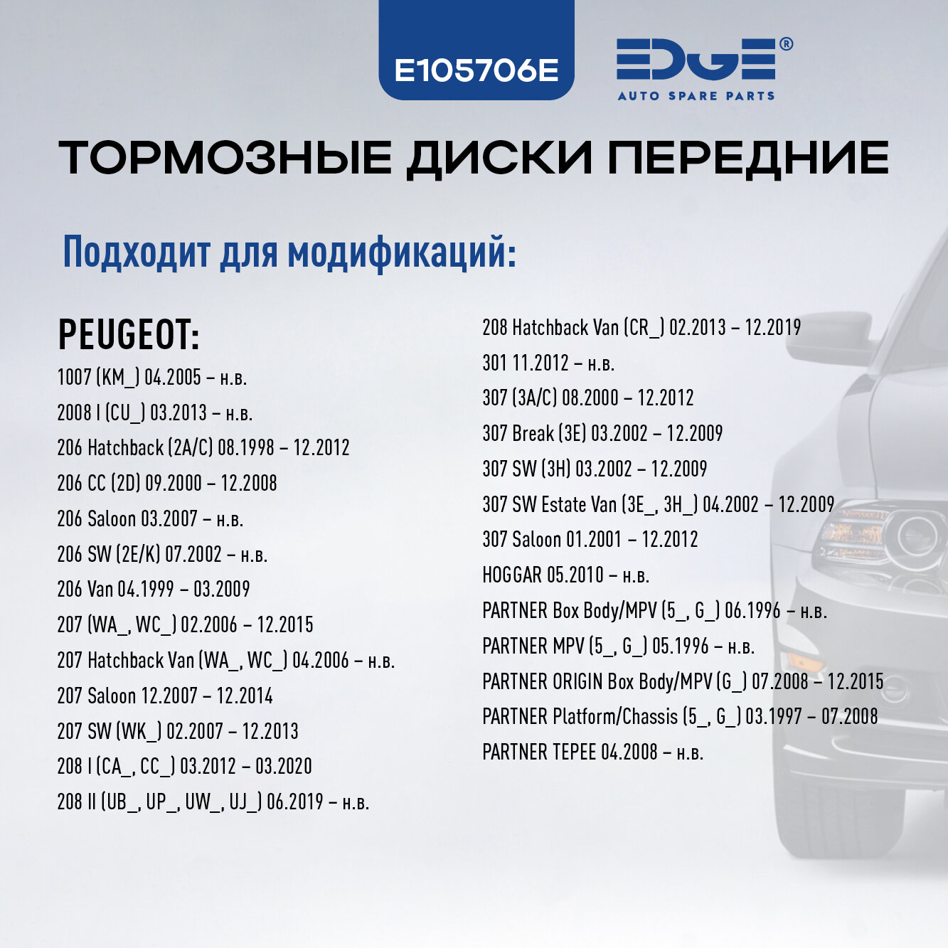 Тормозные диски передние, вентилируемый ПЕЖО 208 1(12 -20), PEUGEOT 208 I, СИТРОЕН С4 1 (04 -14), CITRO N C4 I, E105706E: сравнение цен, характеристики, фото, актуальное наличие и цены.