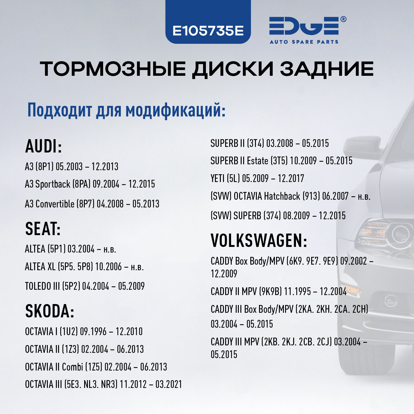 Тормозные диски задние, ауди А3 (03-15), AUDI A3, шкода йети (09-17), SKODA YETI, E105735E: сравнение цен, характеристики, фото, актуальное наличие и цены.