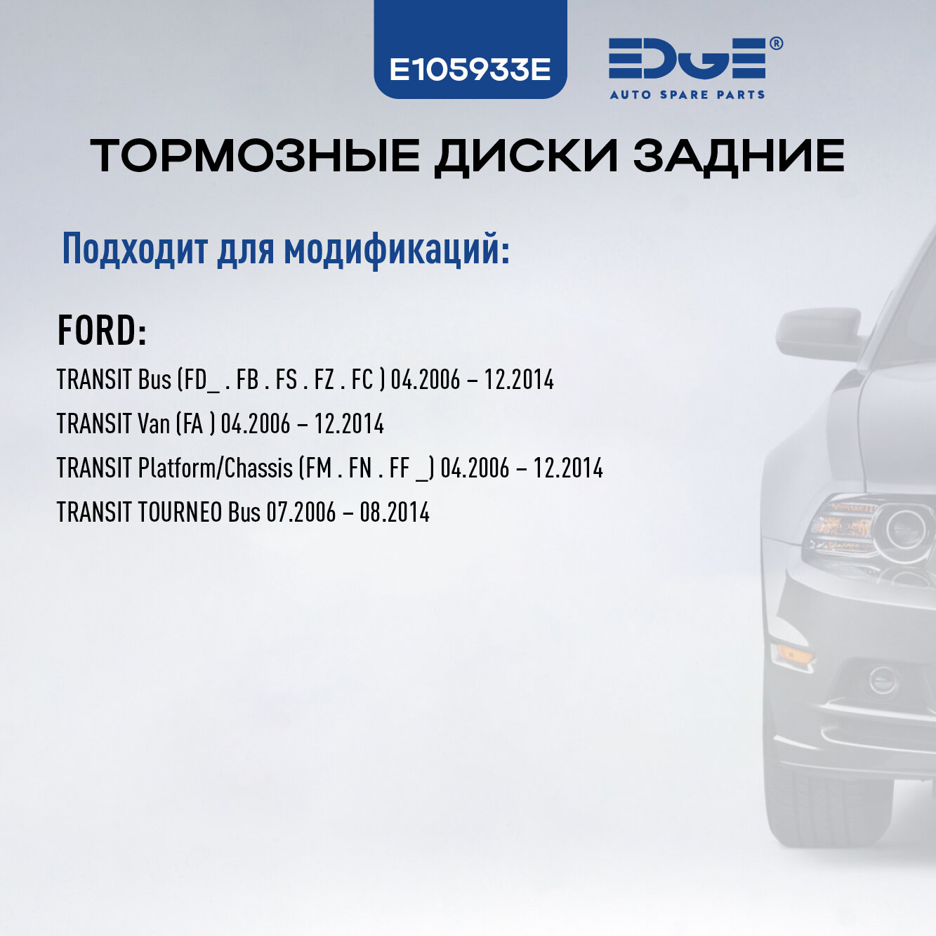 Тормозные диски задние ФОРД ТРАНЗИТ (06-14), FORD TRANSIT, E105933E: сравнение цен, характеристики, фото, актуальное наличие и цены.