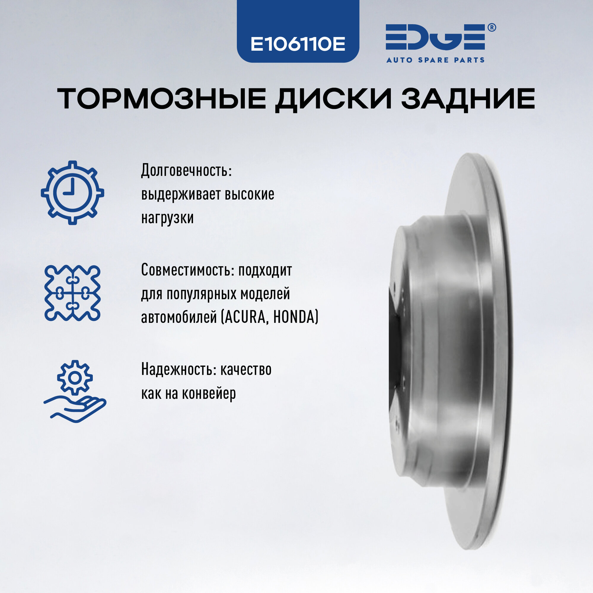 Купить Тормозные диски задние хонда CR-V II (01-07), HONDA CR-V II, акура РДХ (12-18), ACURA RDX, E106110E с доставкой по всей России.