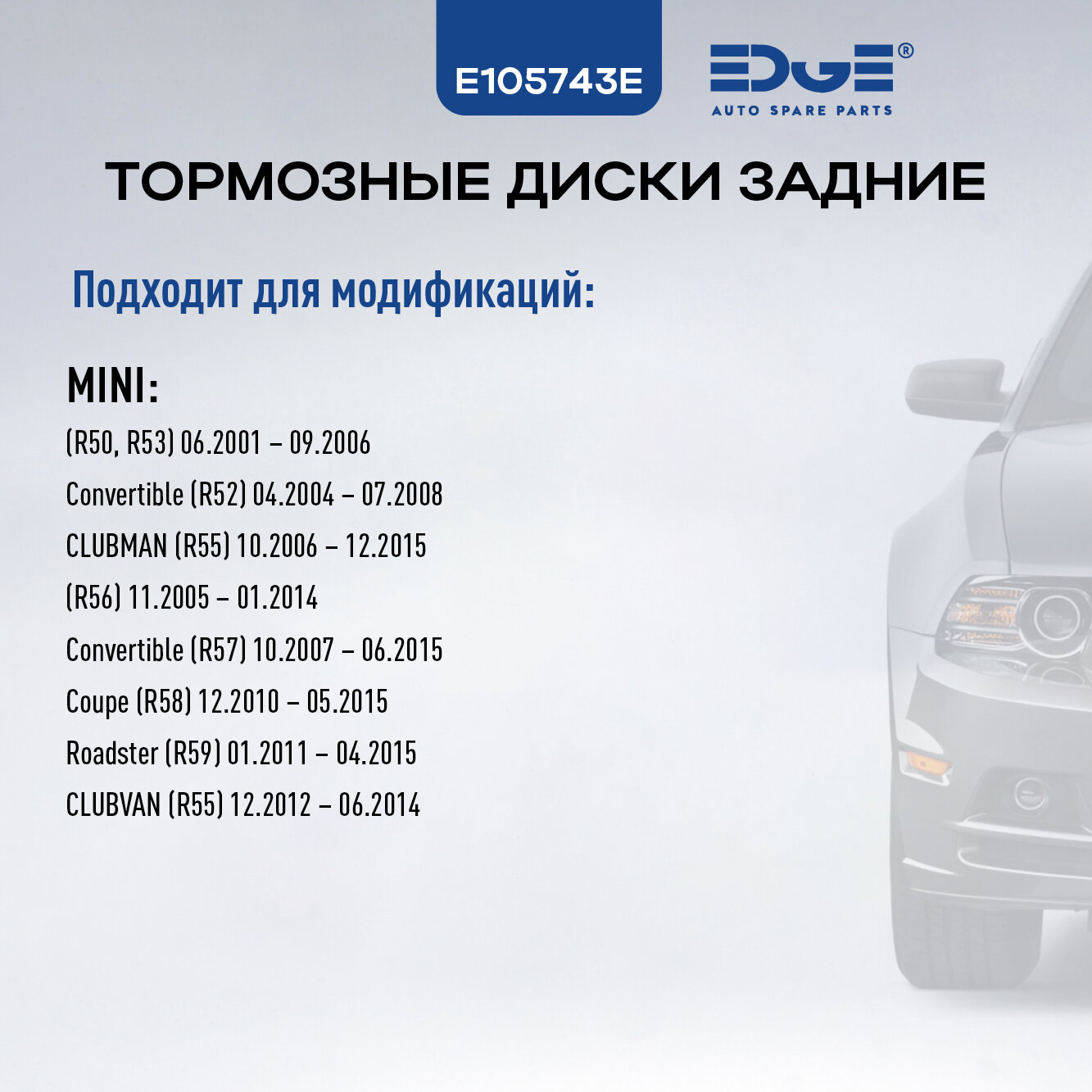 Тормозные диски задние, мини (01-15), MINI, мини купе (10 — 2015), MINI COUPE, E105743E: сравнение цен, характеристики, фото, актуальное наличие и цены.