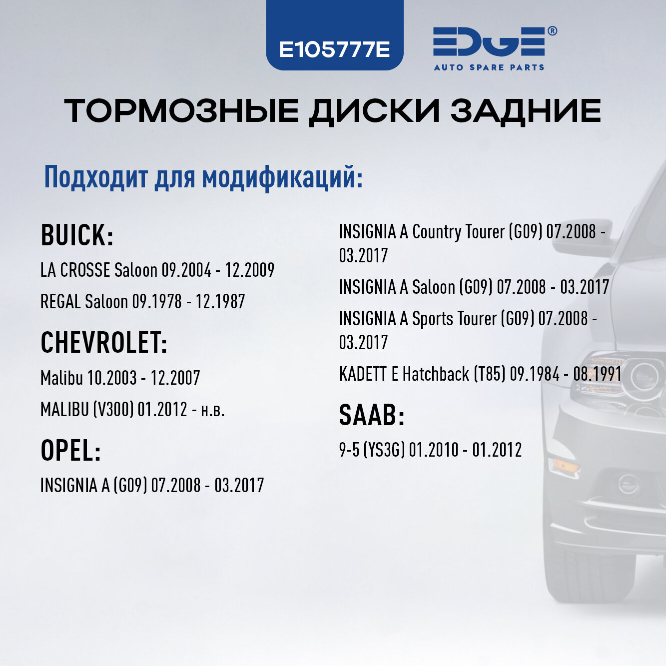 Тормозные диски задние ОПЕЛЬ ИНСИГНИЯ A G09 (08-19), OPEL INSIGNIA A G09, ШЕВРОЛЕ МАЛИБУ (03-07), CHEVROLET MALIBU , E105777E: сравнение цен, характеристики, фото, актуальное наличие и цены.