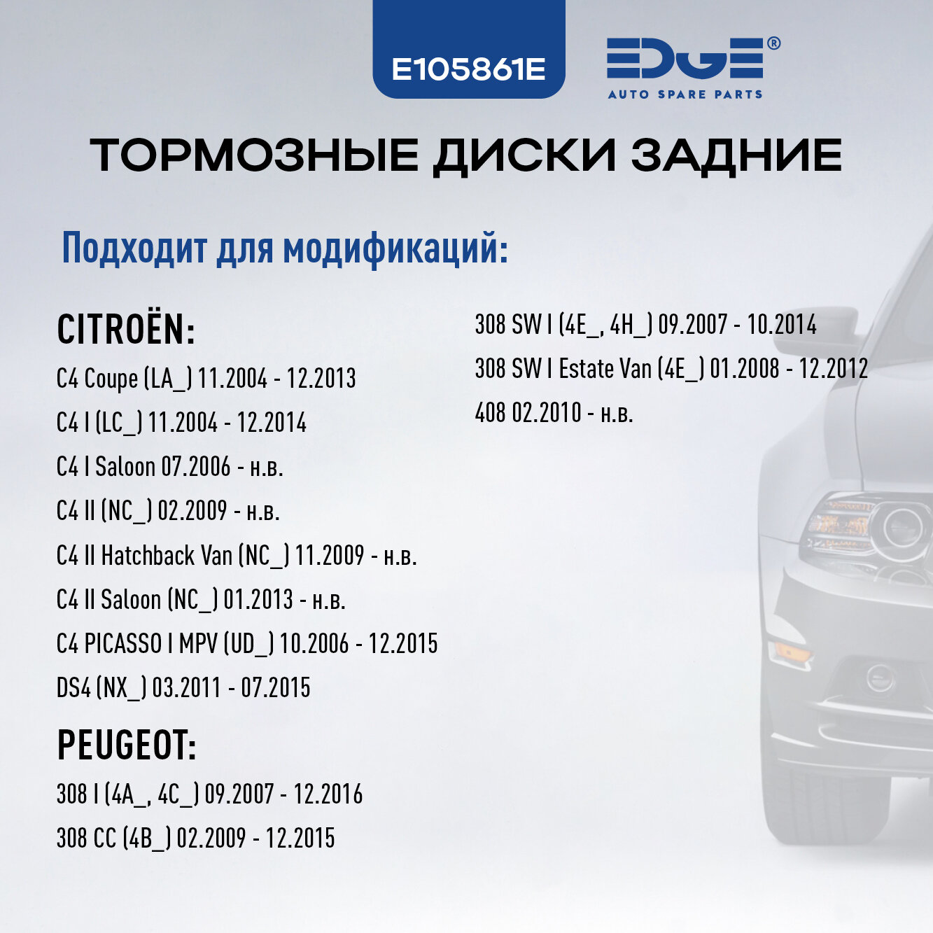 Тормозные диски задние пежо 308 (07-16), PEUGEOT 308, E105861E: сравнение цен, характеристики, фото, актуальное наличие и цены.