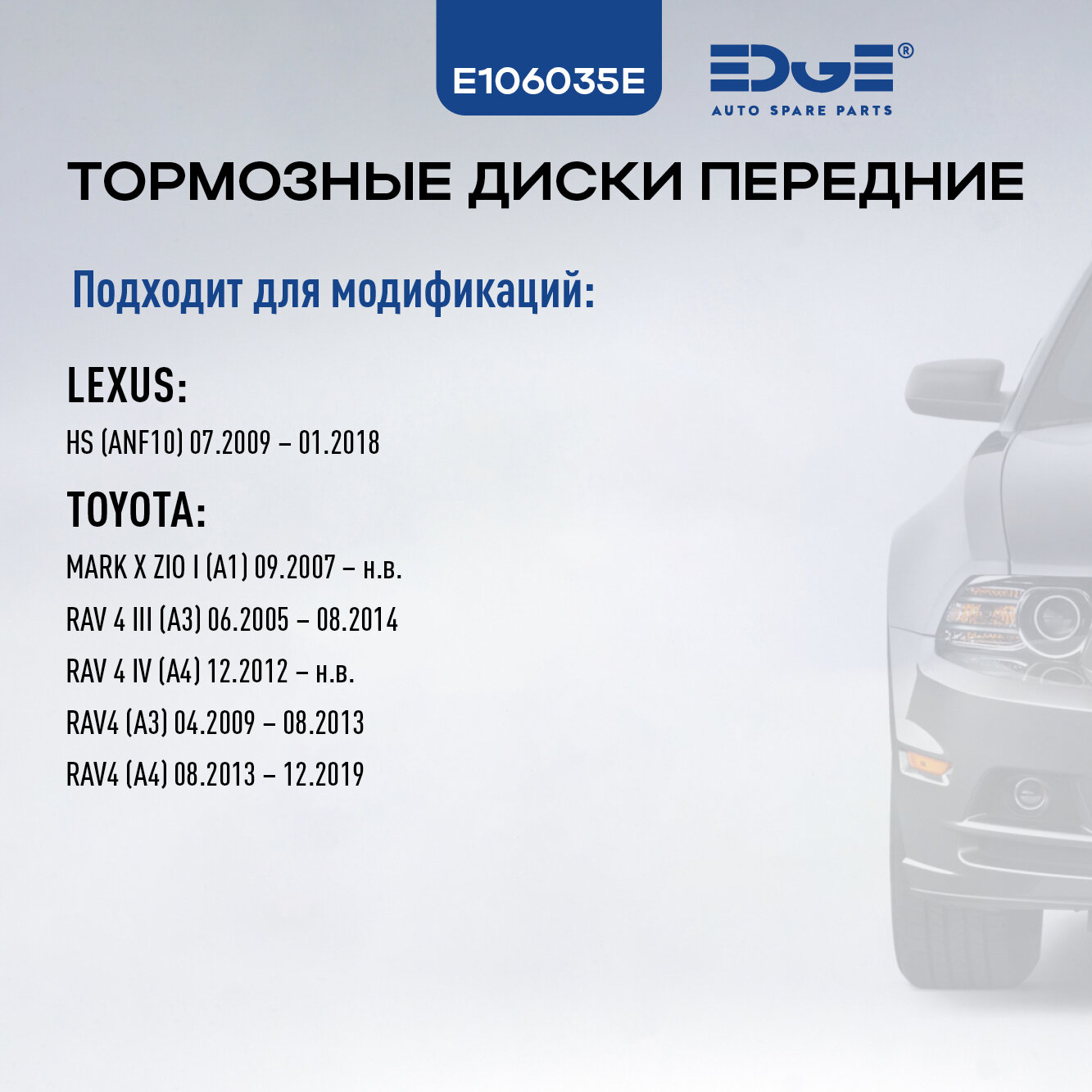 Тормозные диски задние, ТОЙОТА РАВ 4 (А3) (09-13), TOYOTA RAV4, ЛЕКСУС HS (09 -18), LEXUS HS, E106035E: сравнение цен, характеристики, фото, актуальное наличие и цены.