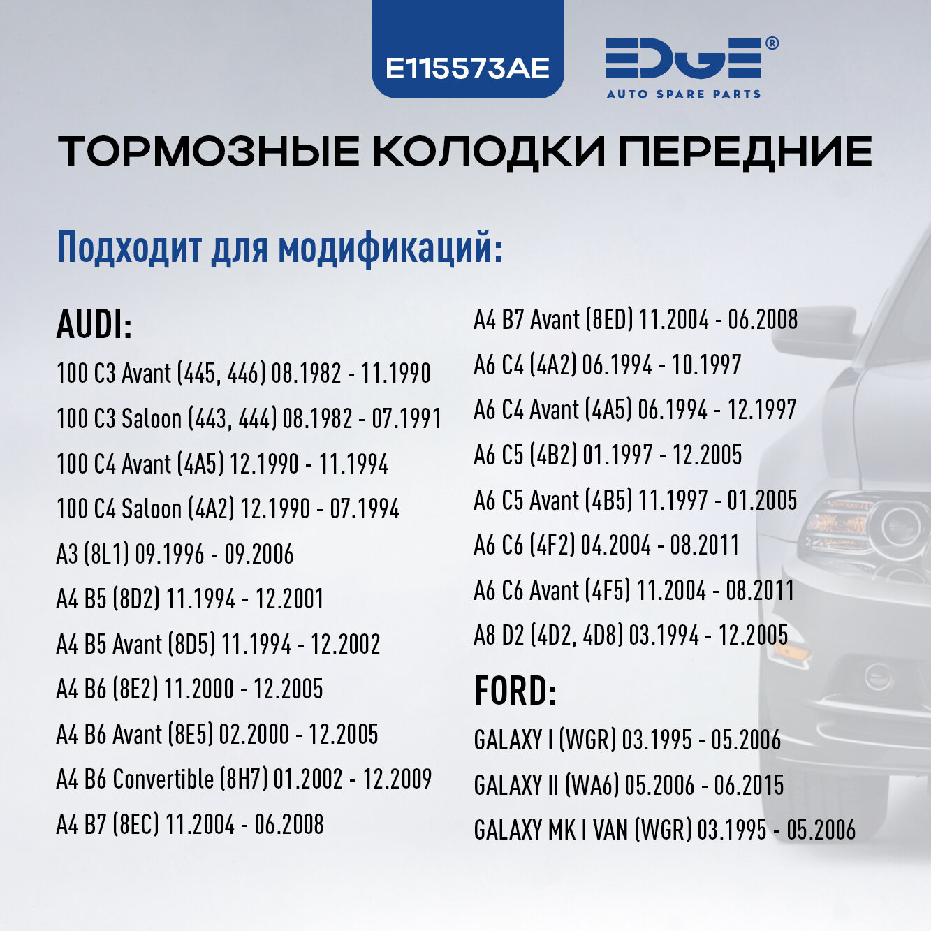Тормозные колодки передние ауди А3 (96-06) – AUDI A3 E115573AE: сравнение цен, характеристики, фото, актуальное наличие и цены.