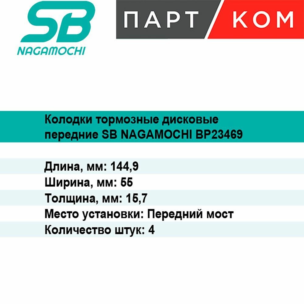 Купить Тормозные колодки передние SB NAGAMOCHI BP23469 для а/м Mitsubishi Lancer IX-X, Outlander (GF), ASX, Airtrek, Galant (DJ), Grandis с доставкой по всей России.