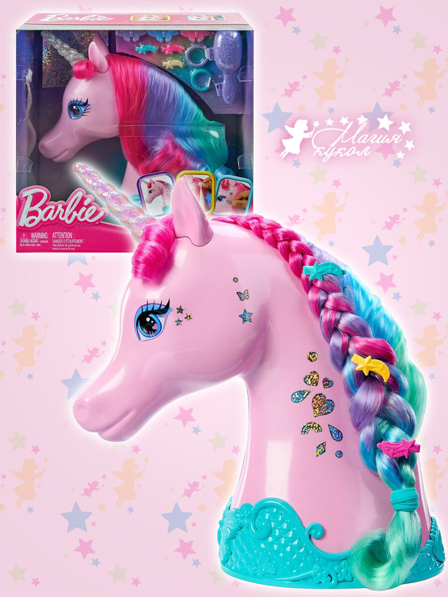 Купить Торс для причесок и макияжа Торс для причесок Барби Единорог с аксессуарами и мерцающими наклейками с доставкой по всей России.