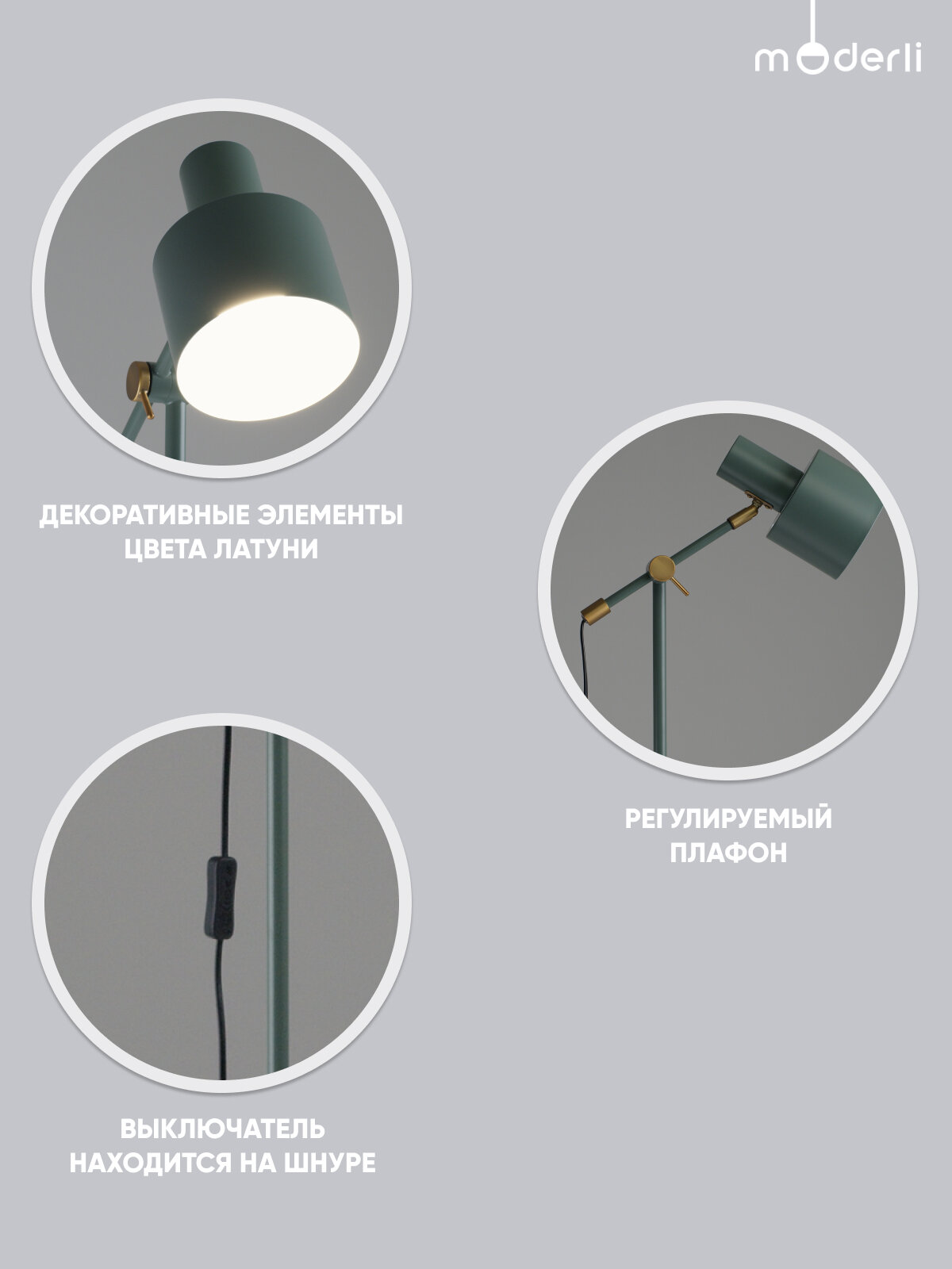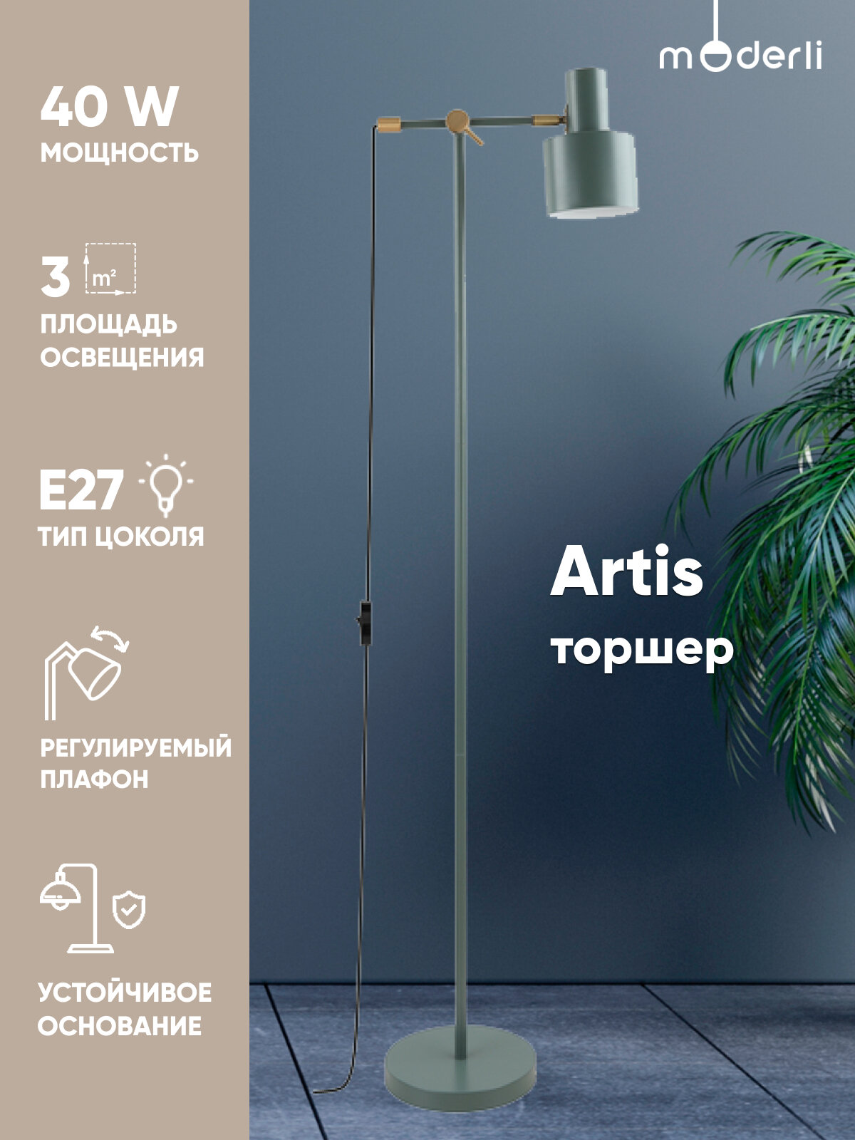 Торшер Moderli Artis V11268-1F, E27, 40Вт, цвет зеленый, металл: сравнение цен, характеристики, фото, актуальное наличие и цены.