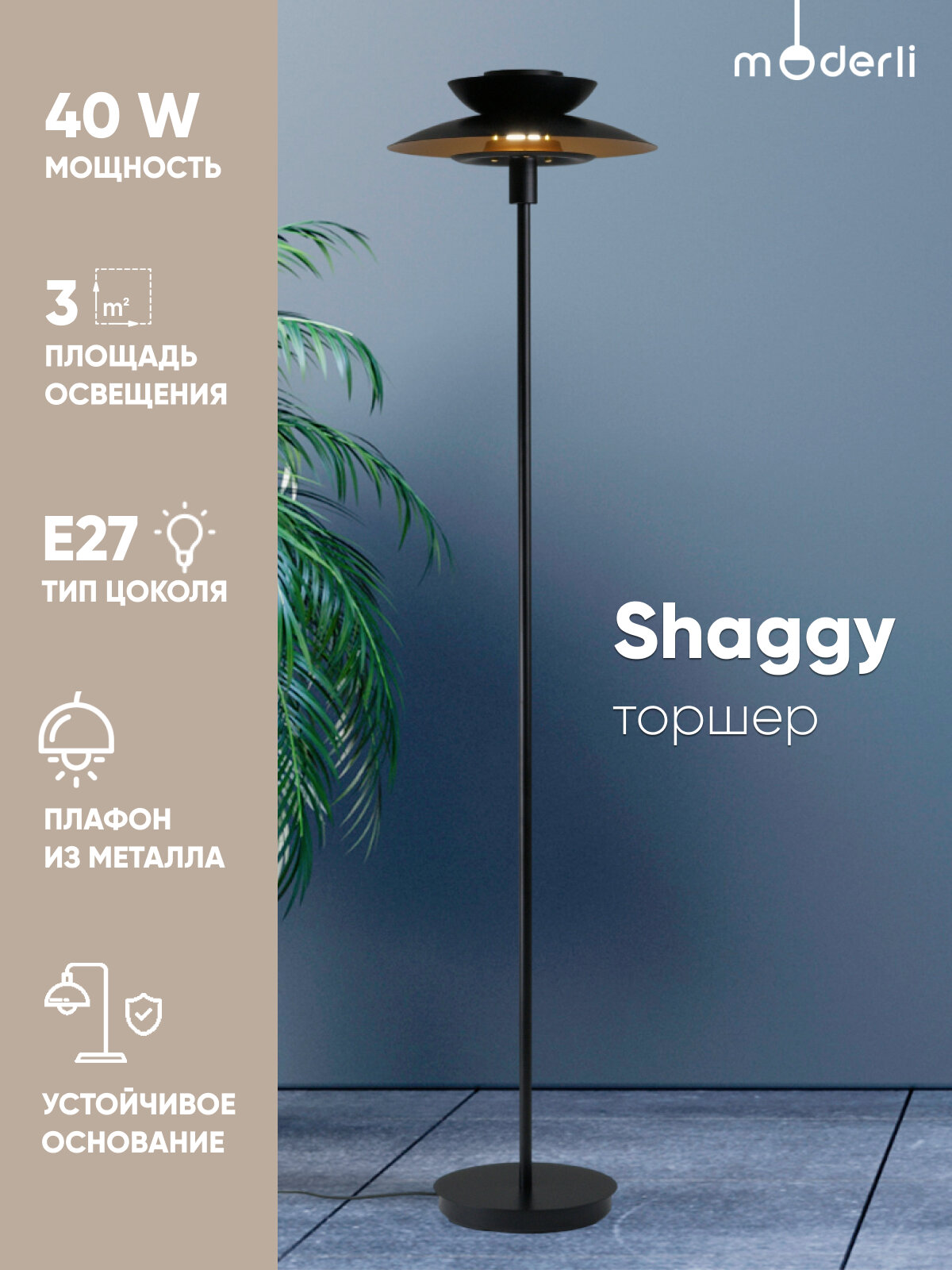 Торшер Moderli V11299-1F Shaggy, E27, 40Вт, металл, черный/золотой: сравнение цен, характеристики, фото, актуальное наличие и цены.