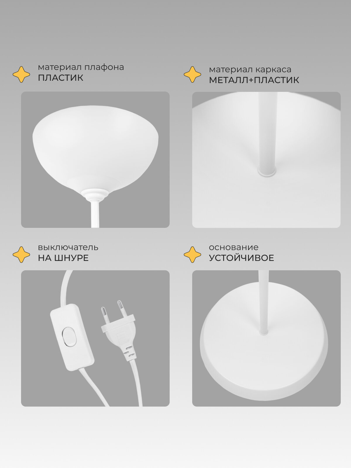 Торшер оснащен одной лампой с типом цоколя E27 и мощностью 15 Вт. Это позволяет выбирать между различными видами ламп, такими как люминесцентные, накаливания или светодиодные, в зависимости от ваших предпочтений и потребностей.