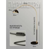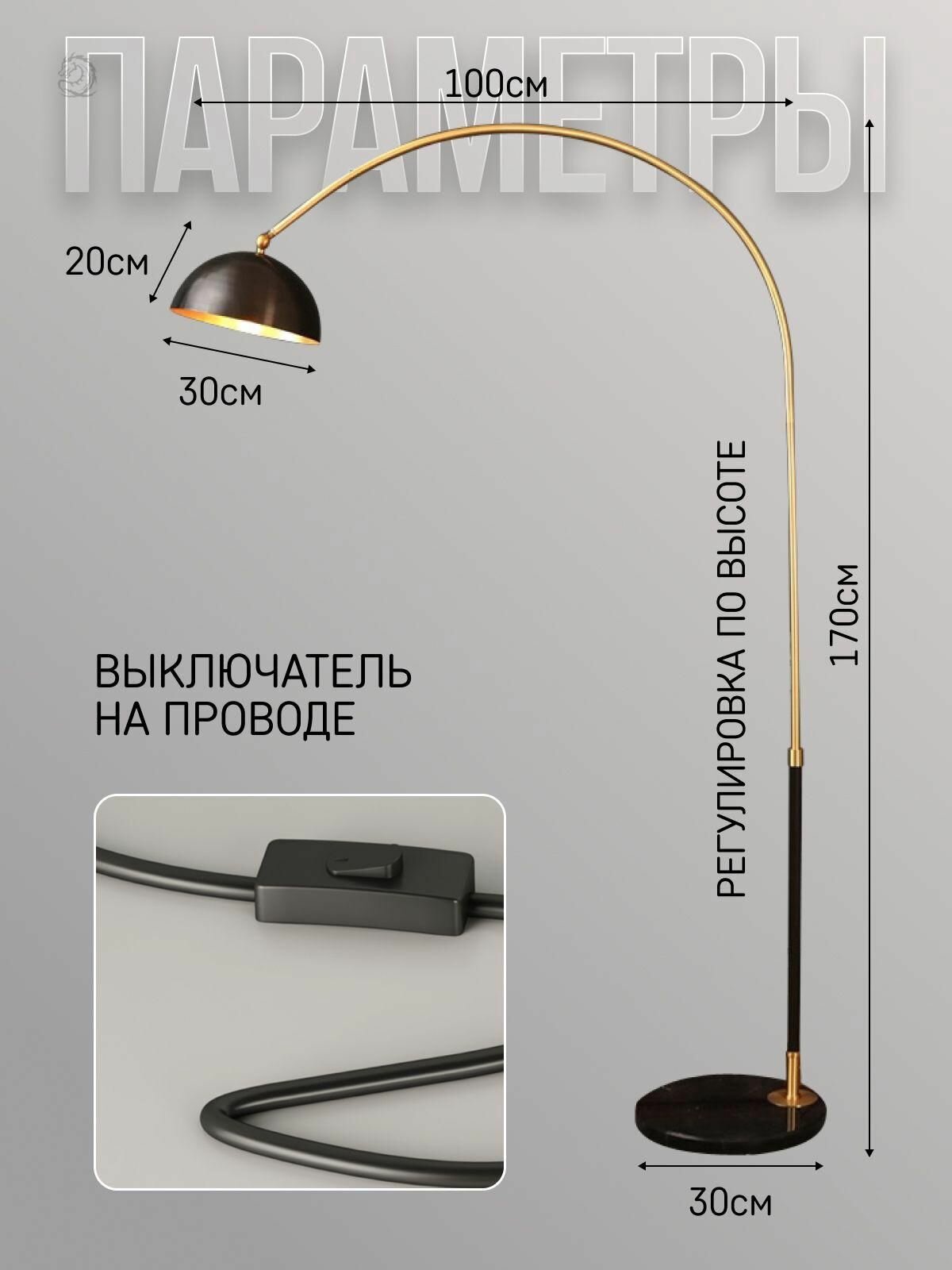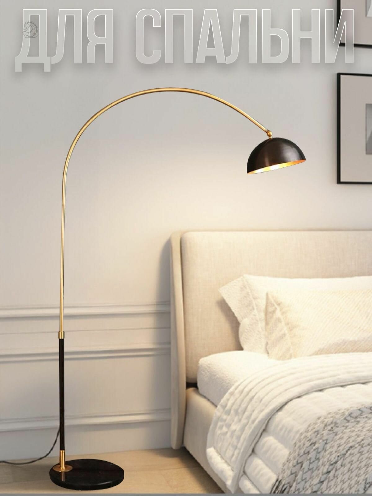 Напольный наклонный светильник на длинной ножке обладает устойчивой металлической конструкцией. Специально разработанный прочный каркас представлен в виде телескопической штанги в форме дуги с мраморным основанием, регулируется по высоте и длине. Оснащен регулируемым направленным нависающим плафоном. Благодаря возможности регулировать наклон и направление света, обеспечивает локальное освещение в любом удобном месте. Его можно использовать как дополнительный источник света в зоне отдыха или как угловой ночник. Можно установить в прикроватной зоне для комфортного чтения книг в ночное время.