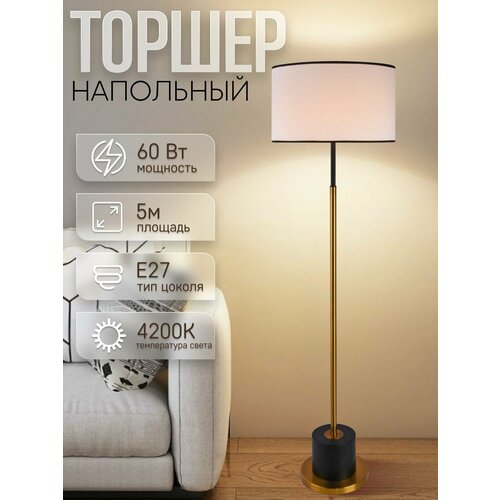 Классический напольный торшер ЭлисСвет – это не просто функциональный предмет интерьера, но и декоративный элемент, который привлекает внимание своим необычным оригинальным дизайном. Он способен придать особую эстетику любому пространству. Модель выполнена в черно-золотом цвете, имеет высокую подставку и большой текстильный плафон в форме цилиндра.