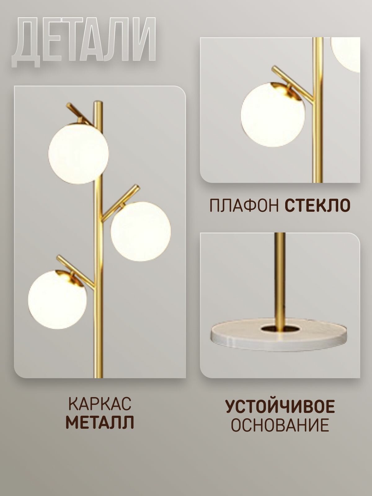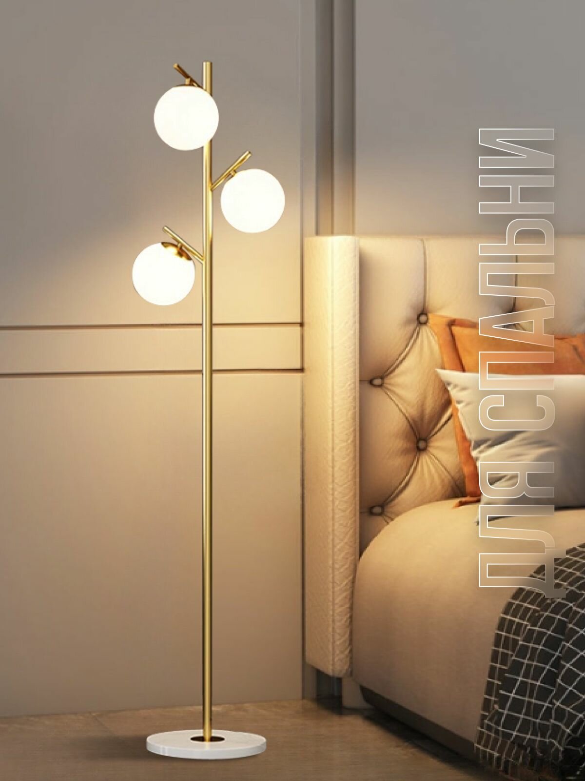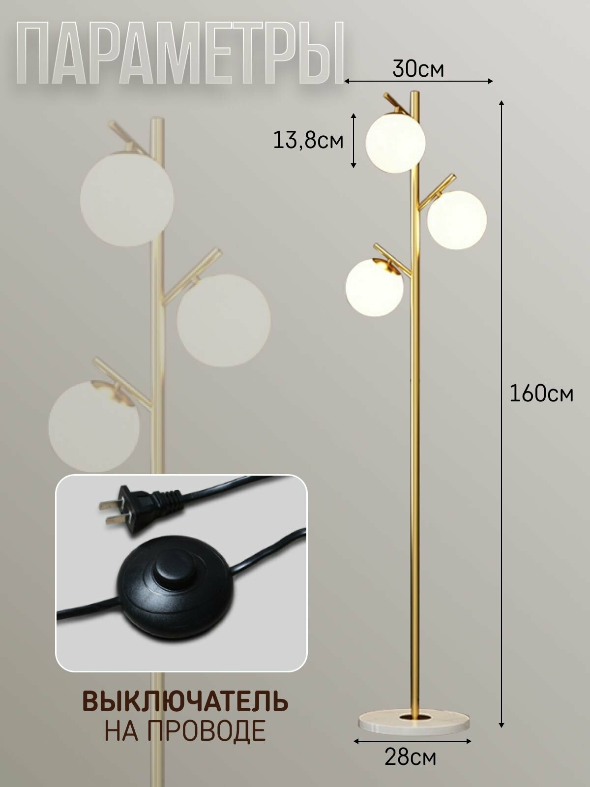 Классический напольный торшер ЭлисСвет – это не просто функциональный предмет интерьера, но и декоративный элемент, который привлекает внимание своим необычным оригинальным дизайном. Он способен придать особую эстетику любому пространству. Модель выполнена в золотом цвете, имеет высокую подставку и стеклянные плафоны в форме шара.