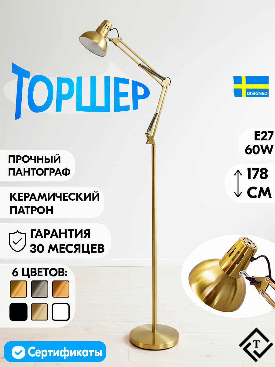 Купить Торшер напольный лампа светильник МТ2003 Античная медь золотой E27 220В Ultra LIGHT с доставкой по всей России.