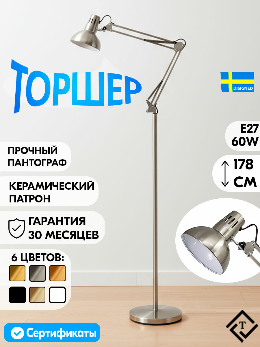Торшер светильник напольный лампа E27 МТ2003 атласный никель – стильное и функциональное решение для освещения вашего пространства. Изготовленный в цвете никель, он легко впишется в любой интерьер, будь то лофт, хай-тек или индастриал.