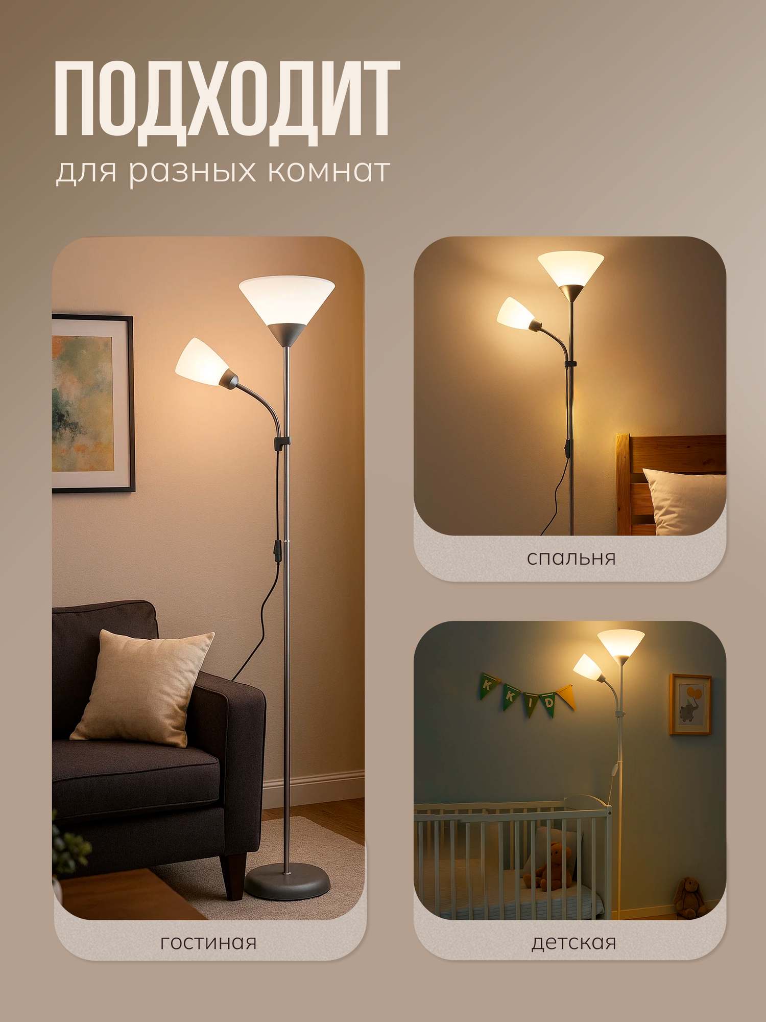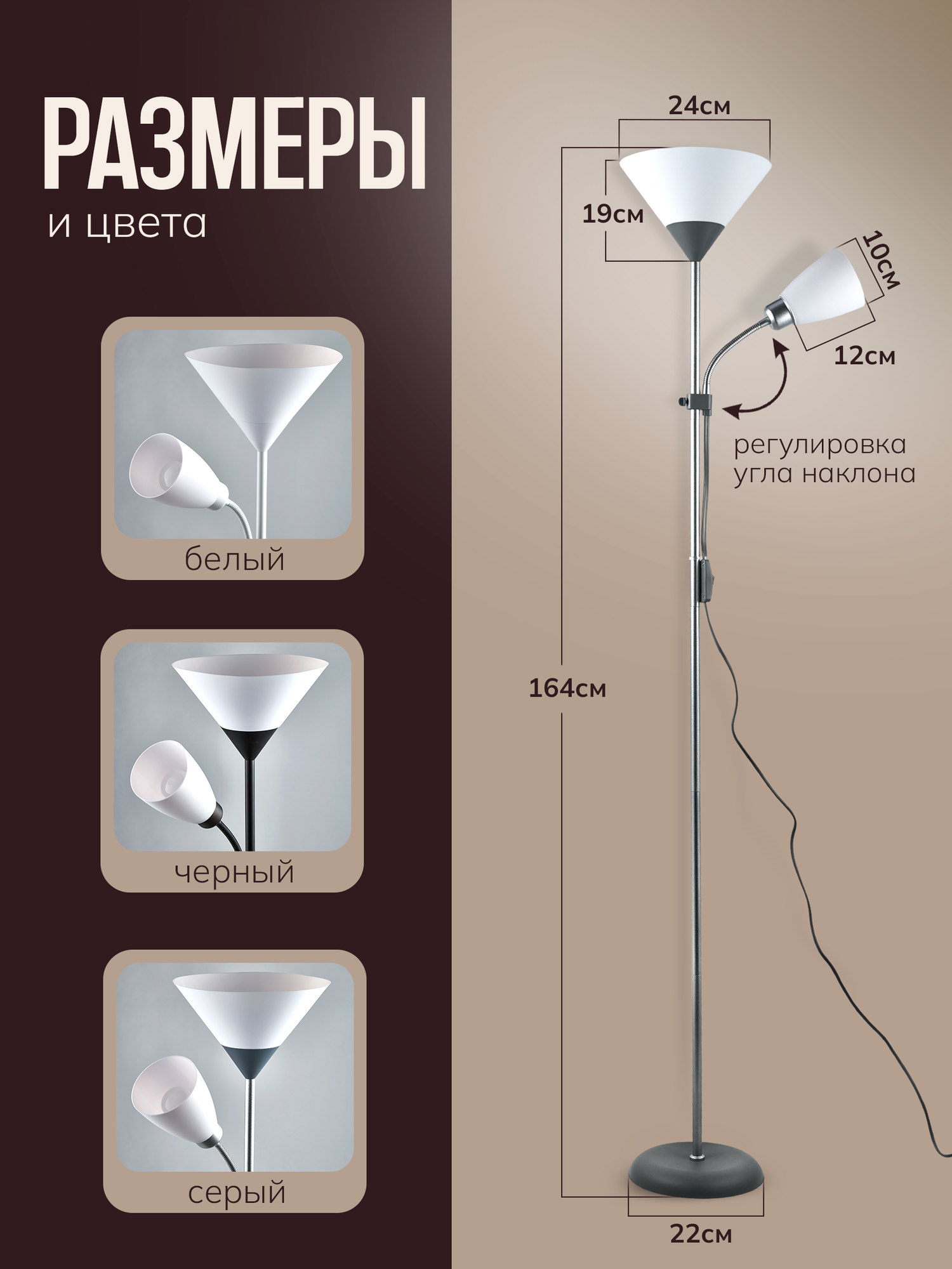 | Особенности | лампы в комплекте, на треноге, регулировка наклона плафона, с абажуром, со столиком |