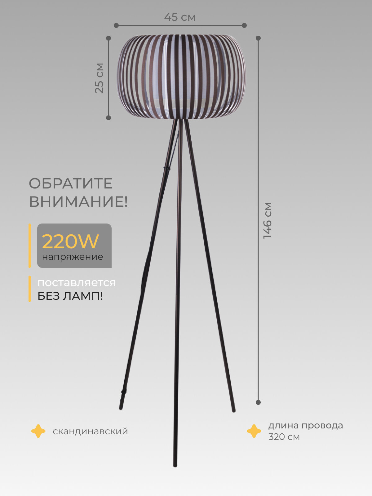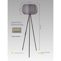 Торшер имеет устойчивую треногу, изготовленную из металла и пластика, что гарантирует его надежность и долговечность. Высота торшера составляет 146 см, а длина и ширина - 45 см. Длина шнура составляет 320 см, что позволяет разместить торшер в любом удобном месте.