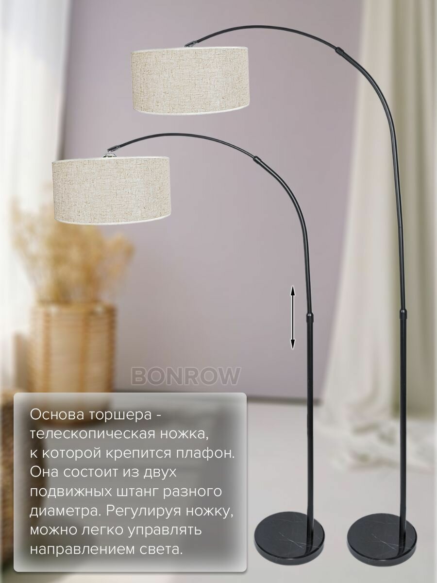 | Особенности | лампы в комплекте, регулировка наклона плафона, регулировка по высоте, с абажуром |