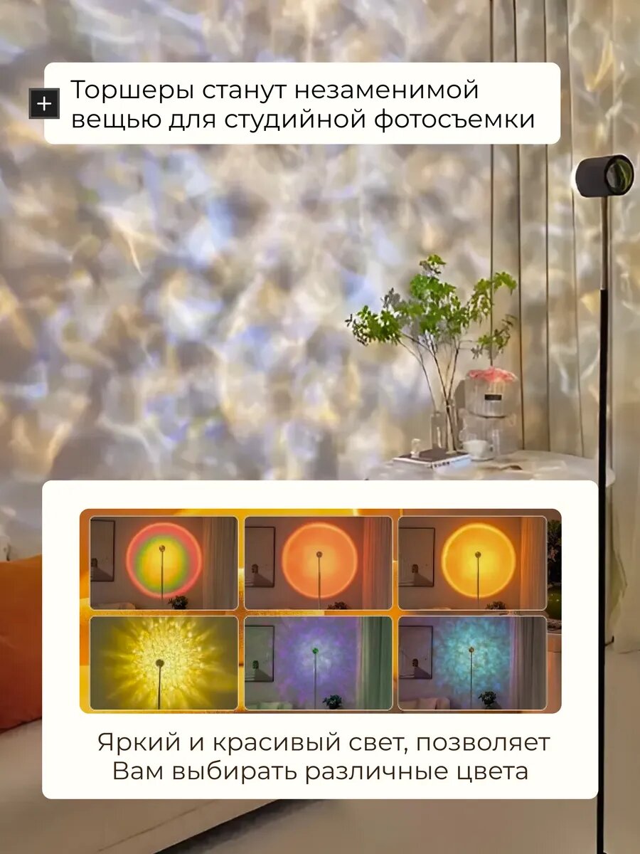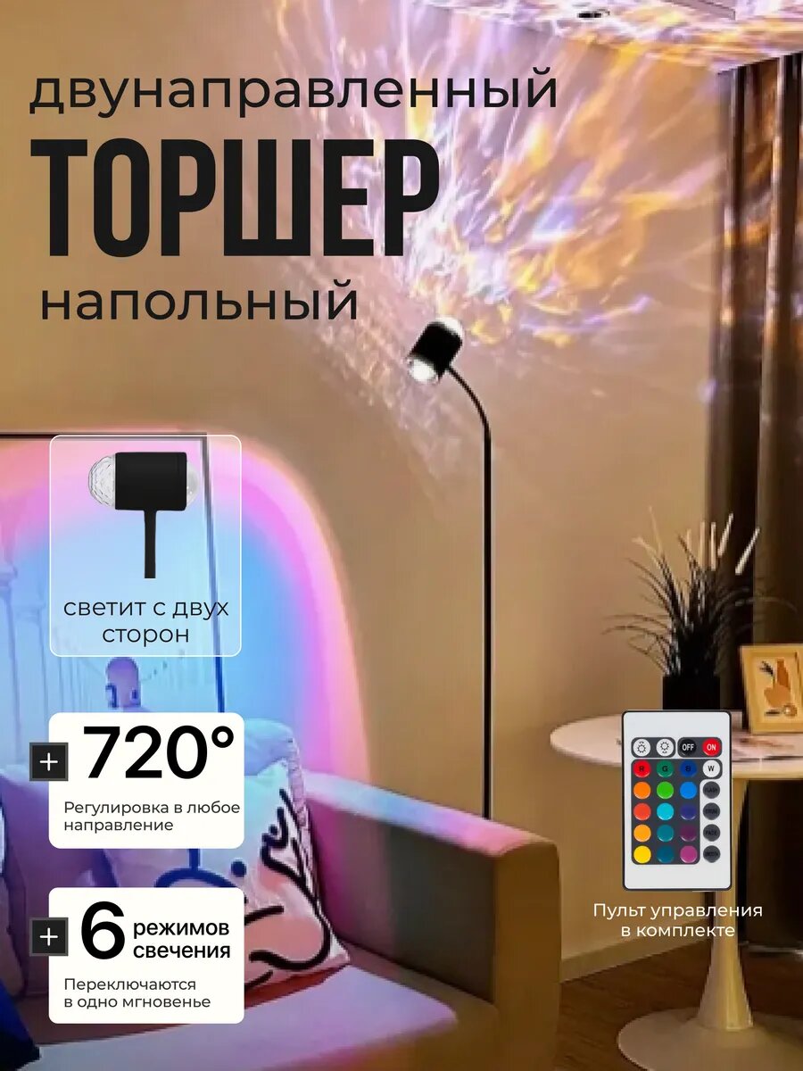 Кроме того, этот торшер можно использовать как настольный светильник для видео- или фотосъёмки. Он оснащён двумя головками, которые создают динамические световые эффекты, напоминающие океанские волны и романтическую атмосферу заката. Благодаря свободно вращающейся конструкции, вы можете направлять свет туда, куда вам нужно, создавая свой собственный стиль и украшая гостиную и спальню.