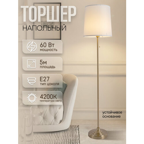 Классический напольный торшер ЭлисСвет – это не просто функциональный предмет интерьера, но и декоративный элемент, который привлекает внимание своим необычным оригинальным дизайном. Он способен придать особую эстетику любому пространству. Модель выполнена в золотом цвете, имеет высокую подставку и тканевый абажур, для света и максимального комфорта.