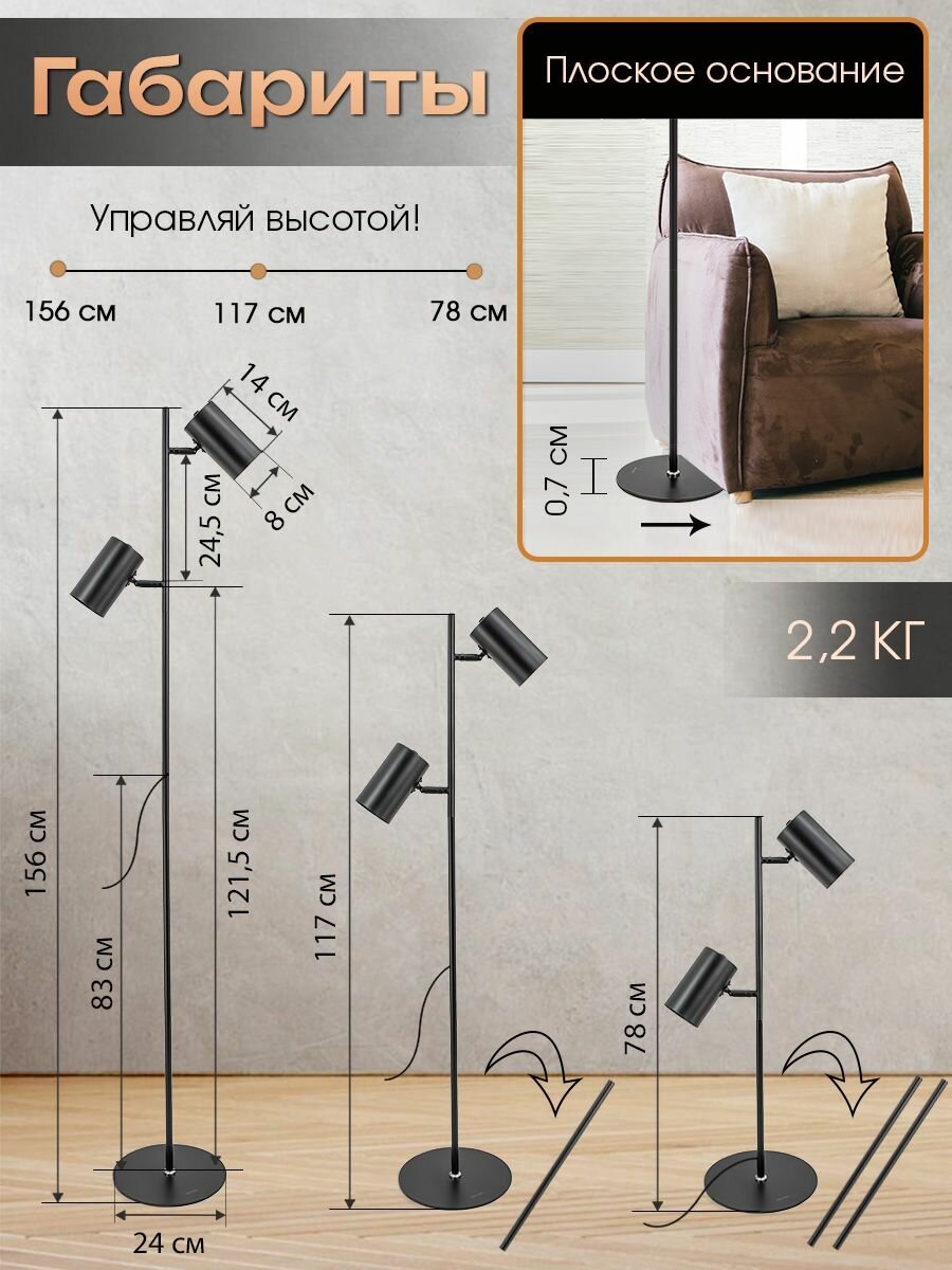 | Направление плафонов | в стороны, вверх, вниз, поворотные |