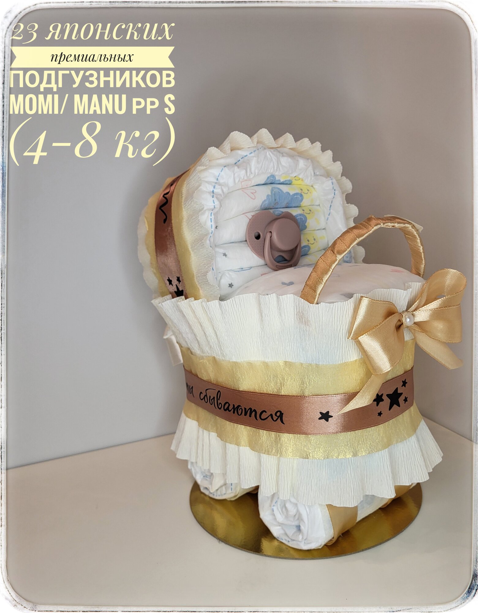 Купить Торт из памперсов, подгузников Золотая Коляска для малышей мальчика или девочки, подарок на выписку из роддома с доставкой по всей России. Торт из памперсов, подгузников Золотая Коляска для малышей мальчика или девочки, подарок на выписку из роддома: сравнение цен, характеристики, фото, актуальное наличие и цены.