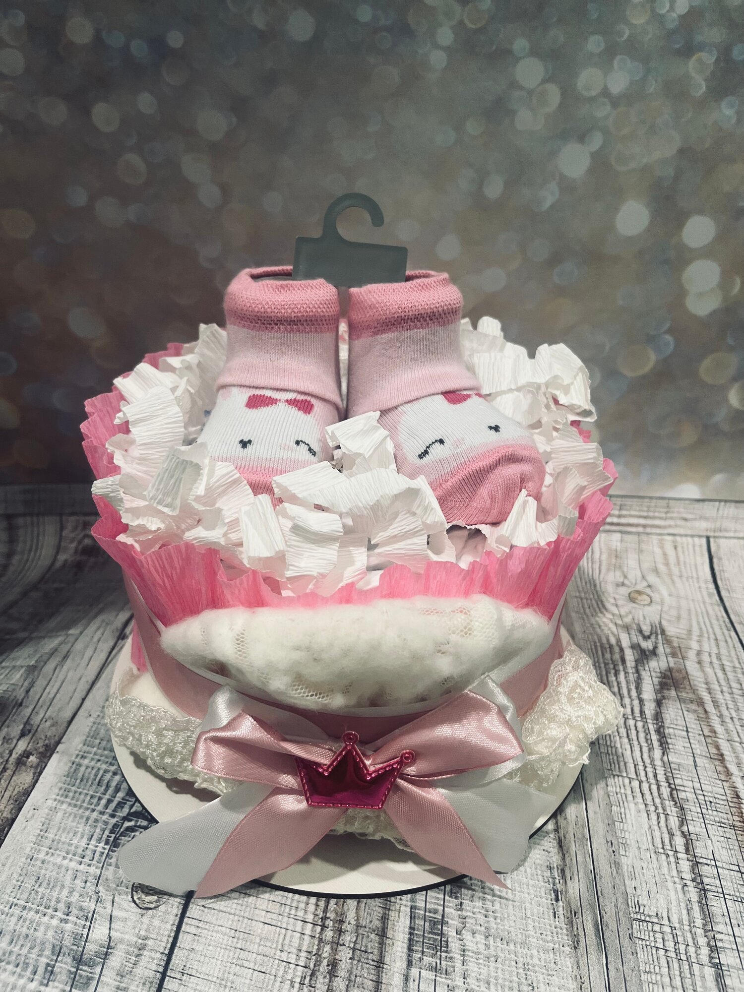 Торт из подгузников для девочки розовый мини