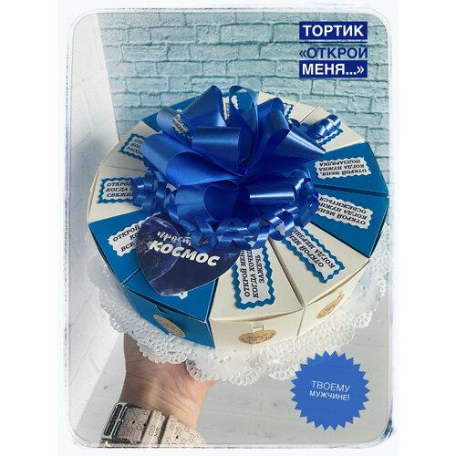 Мужской тортик "Открой меня." - креативный, небанальный подарок Вашему мужчине по поводу и без! Представляет собой 12 порционных кусочков с шутливым названием и не менее шутливым содержанием.