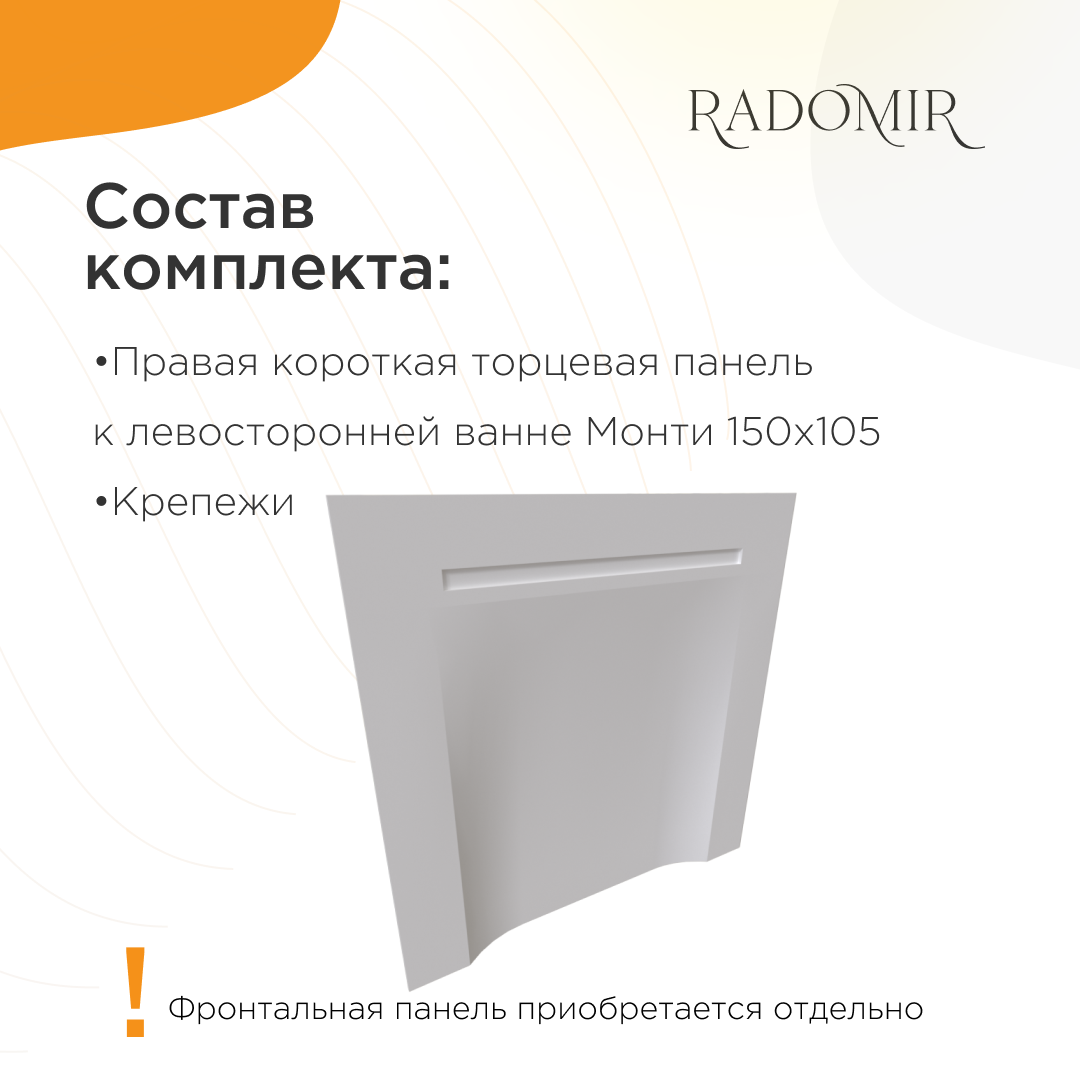 Торцевая панель для ванны Радомир Монти 150х105 правосторонняя / 2-41-0-2-0-213: сравнение цен, характеристики, фото, актуальное наличие и цены.