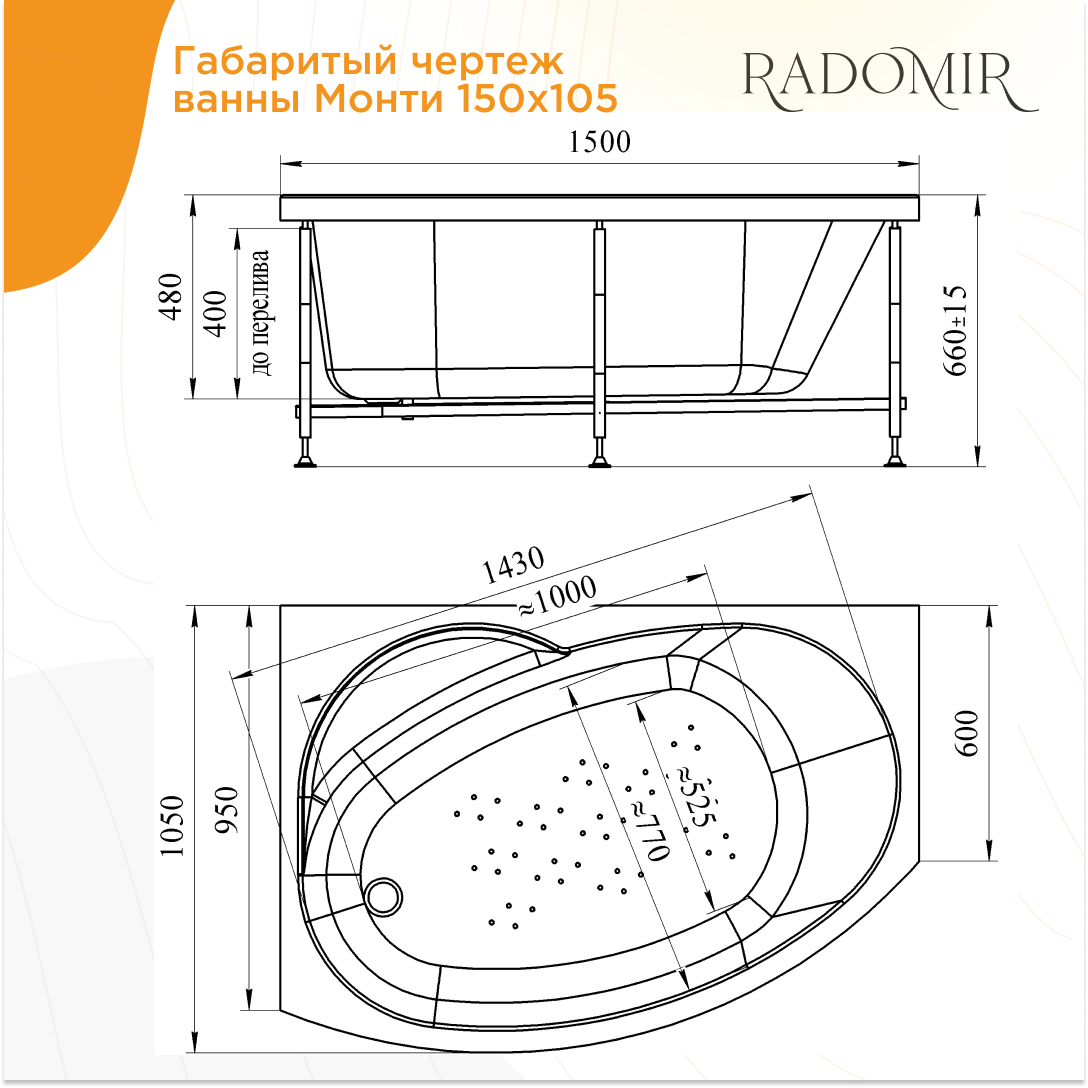 Купить Торцевая панель для ванны Радомир Монти 150х105 правосторонняя / 2-41-0-2-0-213 с доставкой по всей России.