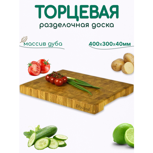 Торцевая разделочная доска EtWood из дуба высшего сорта размером 40x30x4 см станет незаменимым помощником на вашей кухне. Изготовленная в столярной мастерской EtWood, эта доска сочетает в себе высокую прочность и обилие дубильных веществ, обеспечивая долгую службу и комфорт в использовании.