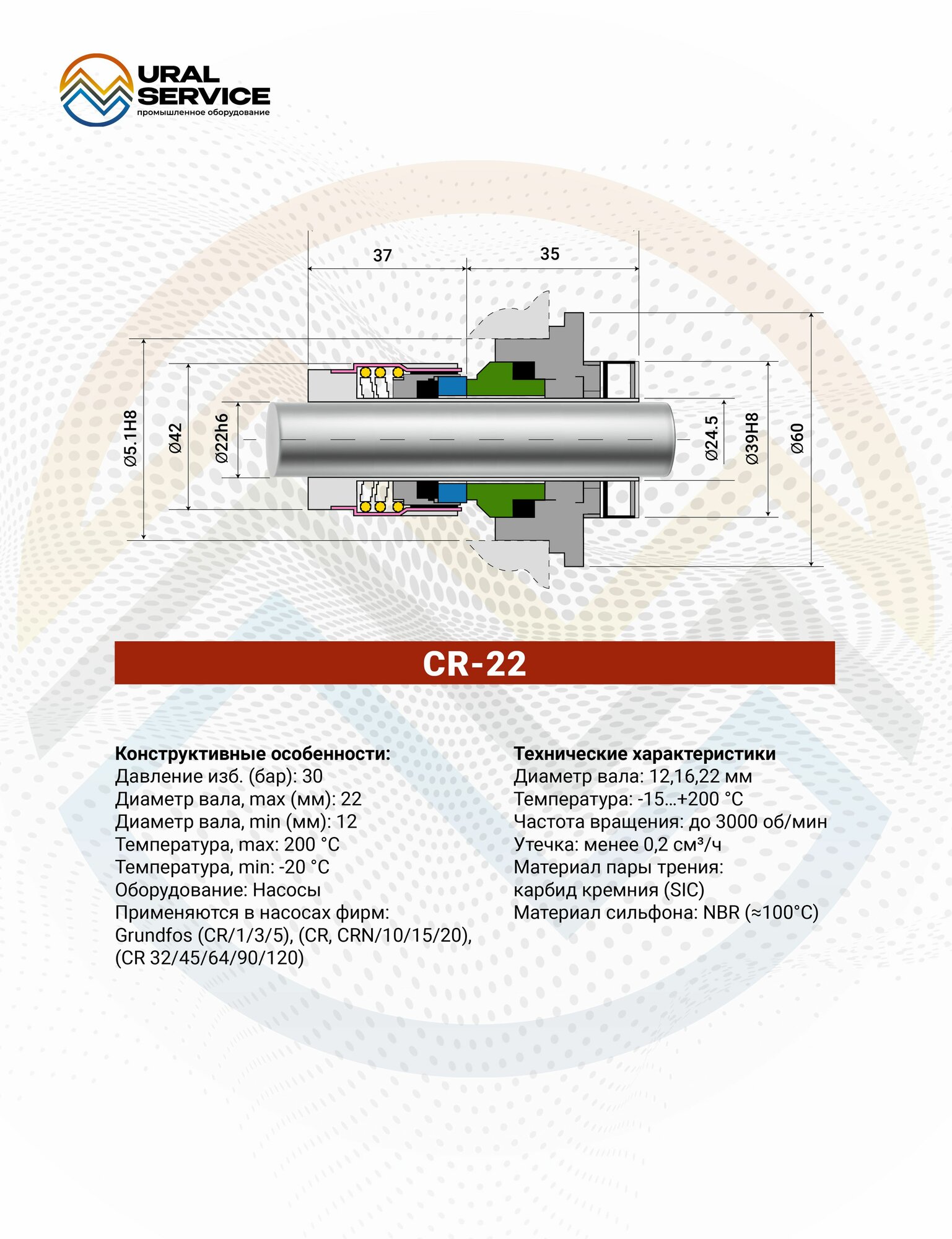 Купить Торцевое уплотнение CR-22 SIC/SIC/NBR для насоса Grundfos CR32, CR45, CR64, CR95 с доставкой по всей России.