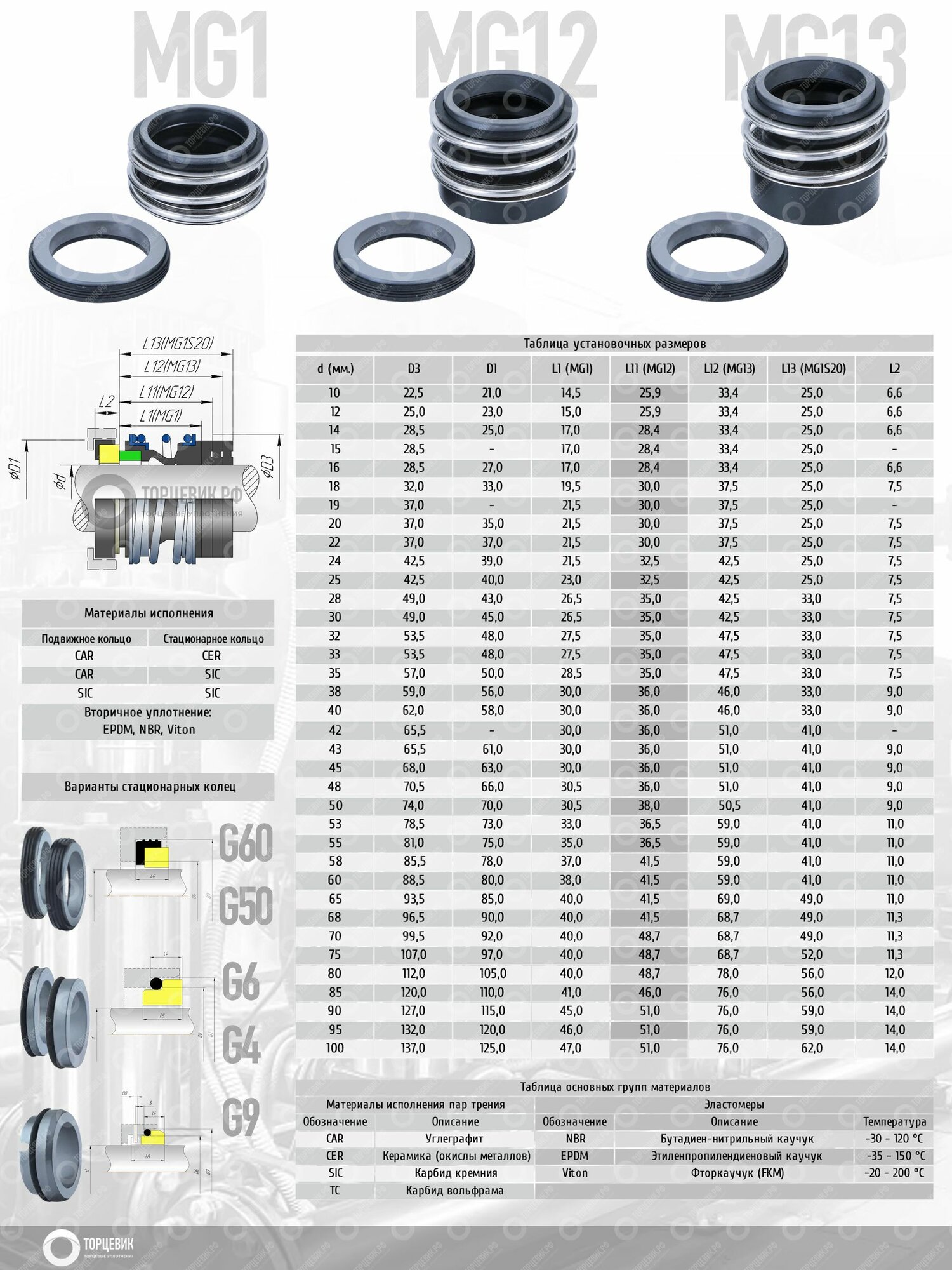 Торцевое уплотнение (сальник) MG12-22 (ASMG12-22) /G60 CAR/SIC/EPDM: сравнение цен, характеристики, фото, актуальное наличие и цены.